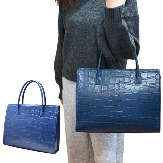 ・クロコ型押しの牛革トートバッグ。