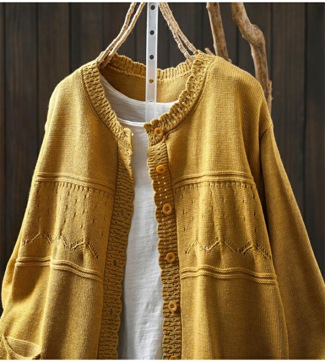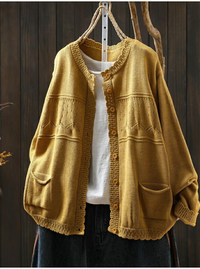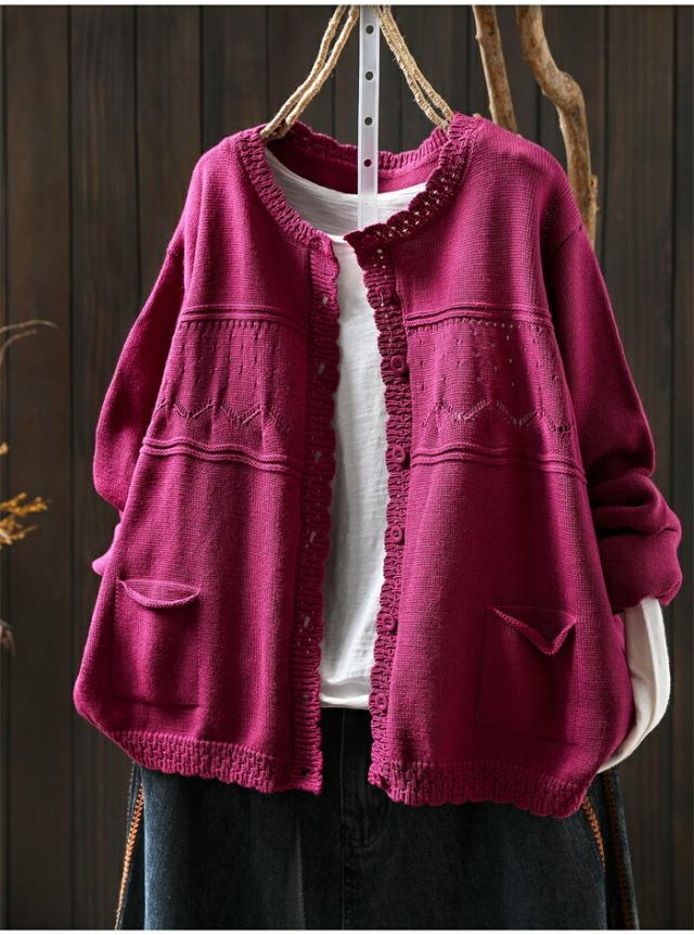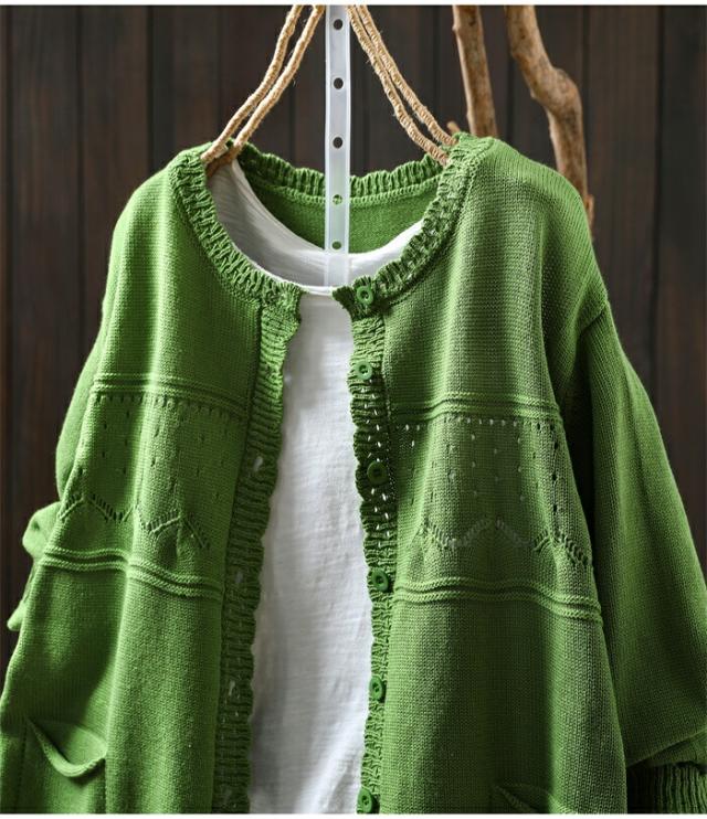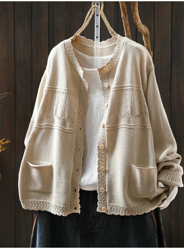 レディース 秋 カーディガン 綿 長袖 ニットカーディガン 透し コットン 前開き トップス キレイめ ライトアウター 羽織り ニットカーデ 大人可愛い ナチュラル 柔らか ゆ 大きいサイズ