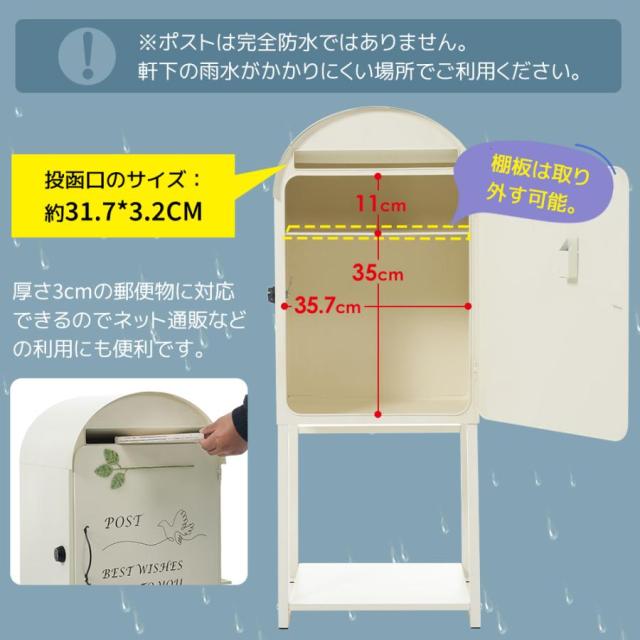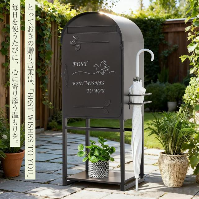 「クーポン配布中」宅配ボックス ポスト 置き型 スタンドポスト 傘立て付き 大型 郵便受け 郵便ポスト 置き配 おしゃれ レトロ 一戸建て用 大容量 北欧 アンティーク 脚付き 収納 メールボックス A4対応 新聞受け 高級