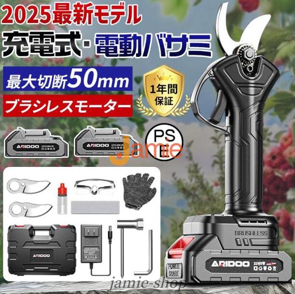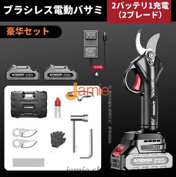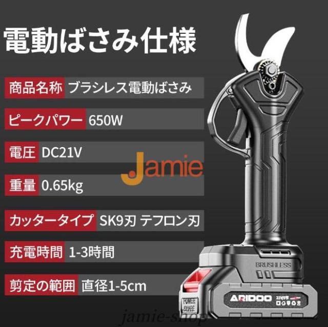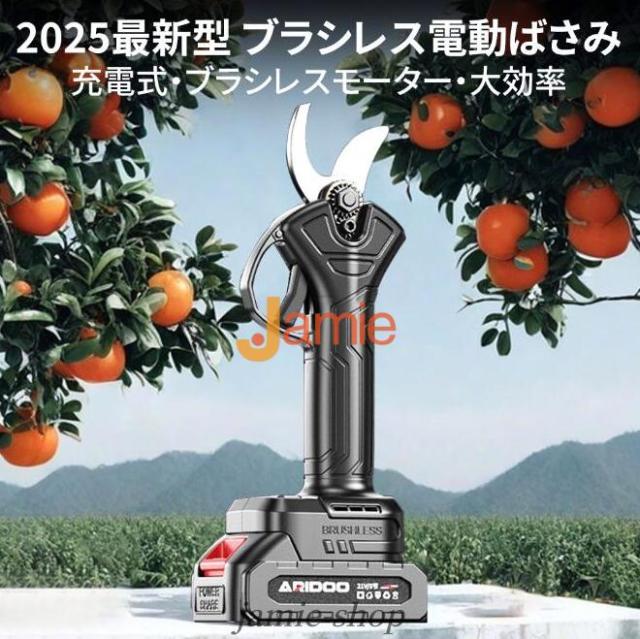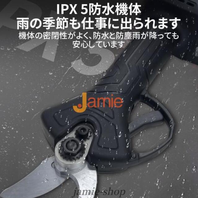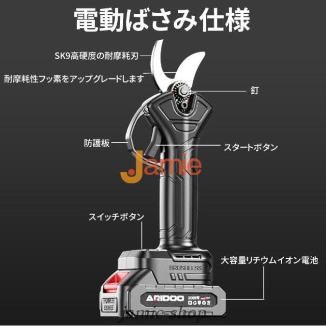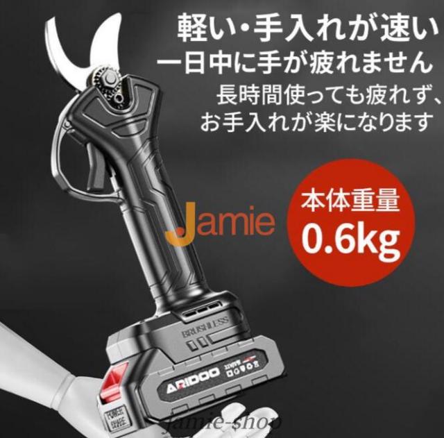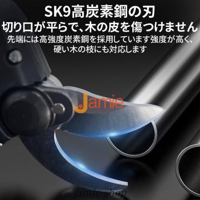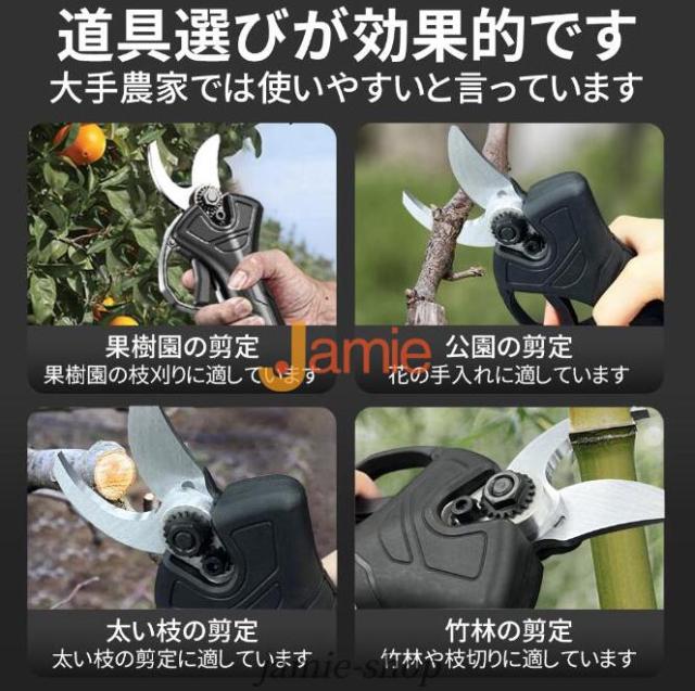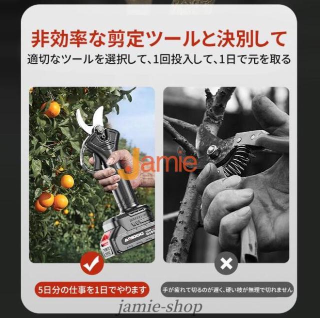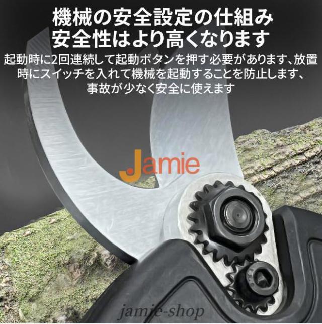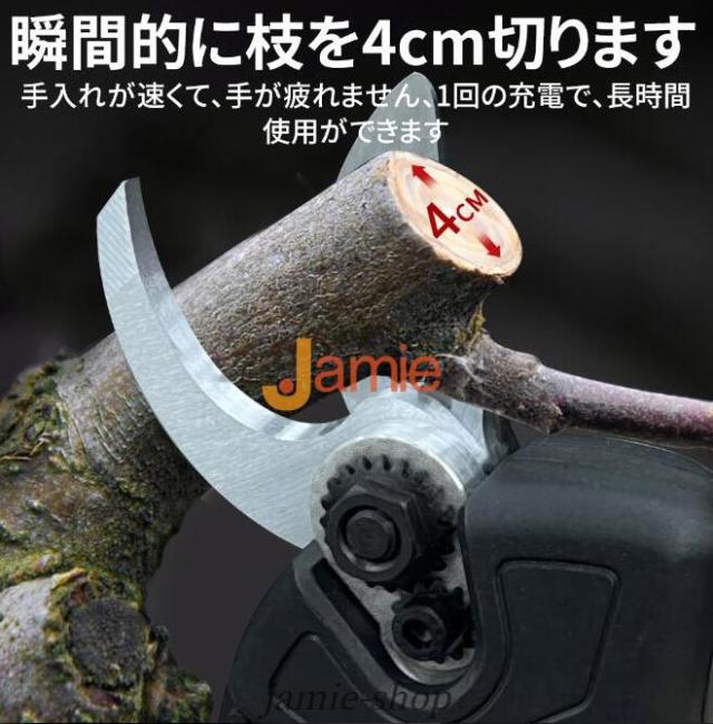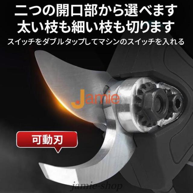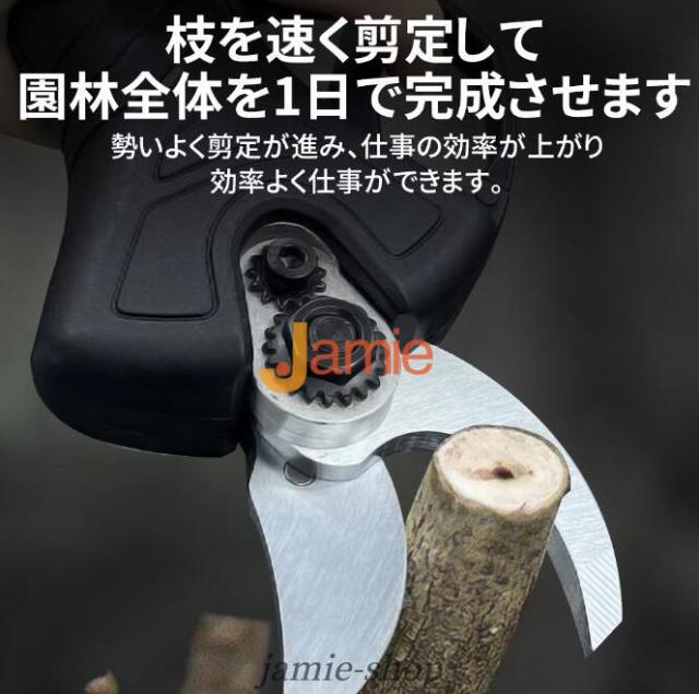 電動剪定ハサミはブラシレスモーター付きの新型電動ハサミ です。安定した性能、高速回転、優れ耐久性と長寿命の特性がります。直径10 20 30 50mmまでの切断が可能です。スーパーパワーで、太さ50mmの枝も1秒で切断できます。コードレス充電式剪定ハサミ、電源が不要であり、様々な場所で使用することができ、場所の心配がありません。