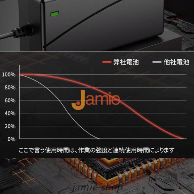 2個高容量リチウムバッテリー付きなので、十分に作業できます。電源コードを接続せずに充電して使用できるため、使用場所を選らず、作業中に線を切る心配もありません。