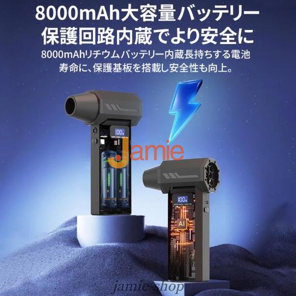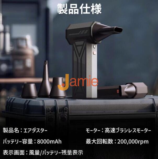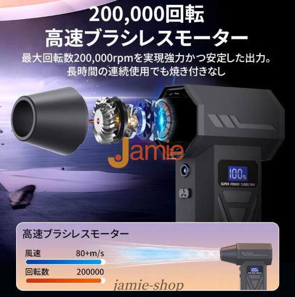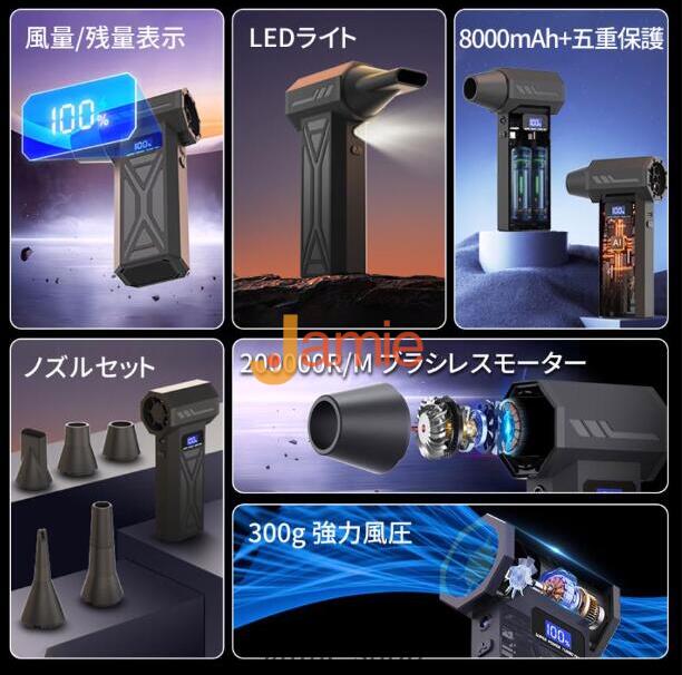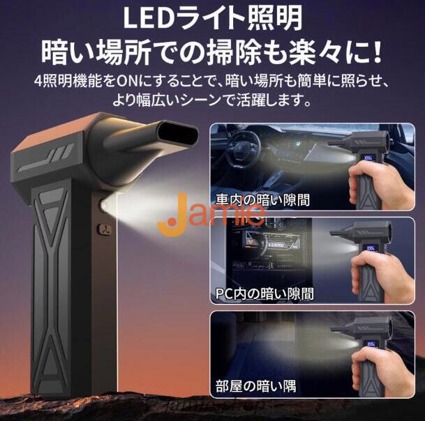 【最大風速80m/s・8000mAh】エアダスター エアブロワー 200000RPM ブラシレスモーター LEDライト照明 スクリーン 残量表示 四段階調整 強力 洗車 電動 小型 電動エアダスター