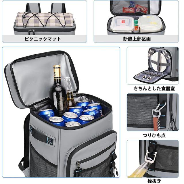 この多機能クーラーバッグは、その大容量、コンパクトなサイズ、軽量性を備えており、多様なアウトドアアクティビティやイベントで、食品や飲料の保冷と保温を確実に実現し、さまざまな場面で重宝します。このクーラーバッグは、アウトドアライフをより快適に、便利に、そして楽しいものにするアイテムです。