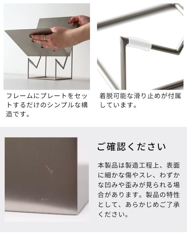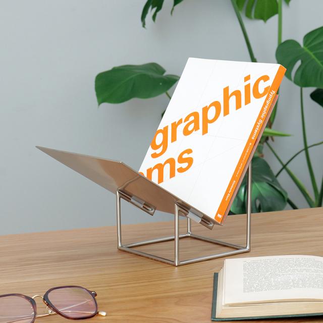 本やレコードを飾るためのミニマルな本立て「Tilaa Book Stand(ティラー ブック スタンド)」。2mm厚のプレートと細身のフレームを組み合わせた構造が、置いた作品の存在感を静かに引き立てます。視線に自然と馴染む60度の角度設計により、美しさと見やすさ、取り出しやすさを両立。文庫本から大判の洋書、レコードまで幅広く対応し、インテリア性と収納性を兼ね備えた収納スペースになります。お気に入りの本を飾るだけで、日常の景色が整い、上質な空間を演出します。