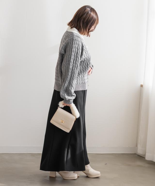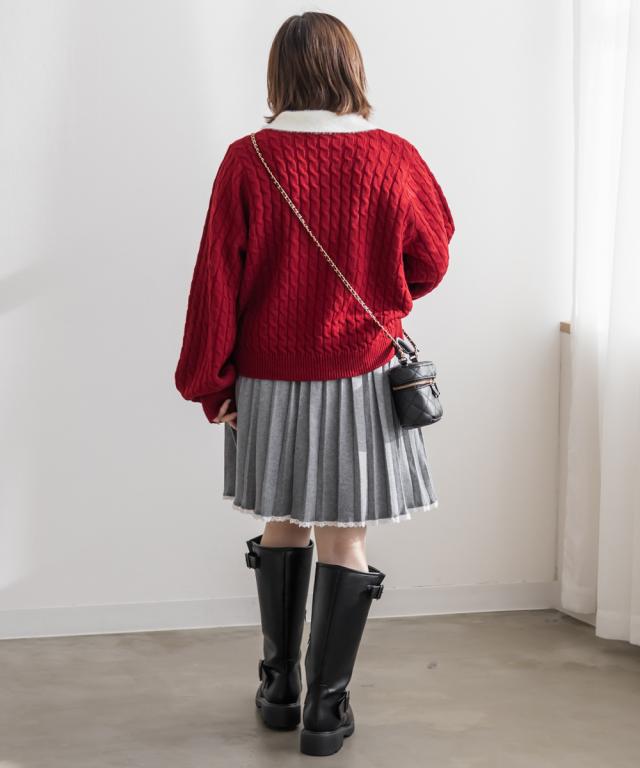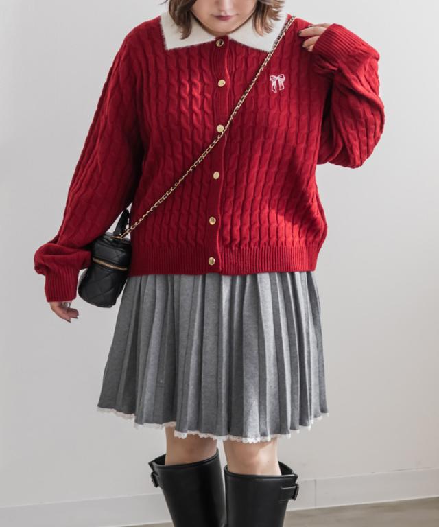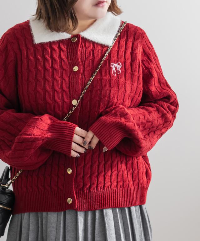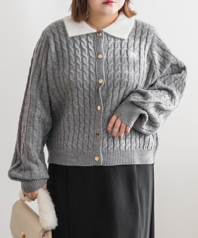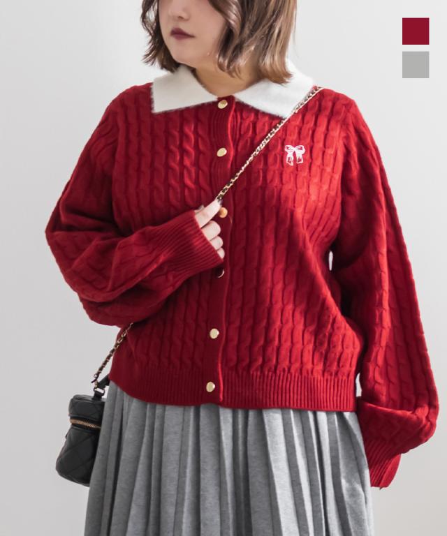 大きいサイズ/レディース/3L/4L/配色襟ケーブルニットカーディガン
