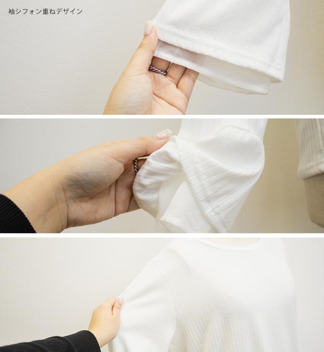 大きいサイズ/レディース/3L/4L/袖シフォン重ねリブプルオーバー