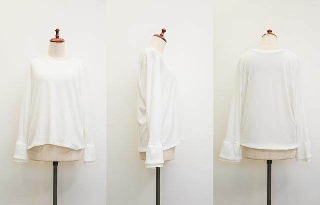| 3Lサイズを着用して丁度いい着心地でした!伸縮性の良いカットソー着心地ラクチンでした!首元はシンプルなクルーネックでどんなシーンにも使いやすいです!袖元だけシフォンが重なっていてさりげなく可愛いです◎トップスとして1枚で着てもいいし、キャミワンピ・ジャケットなどなど重ねてもいいと思います!着回ししやすい1枚なのであると便利です。 |
