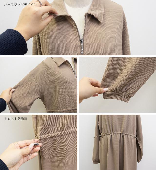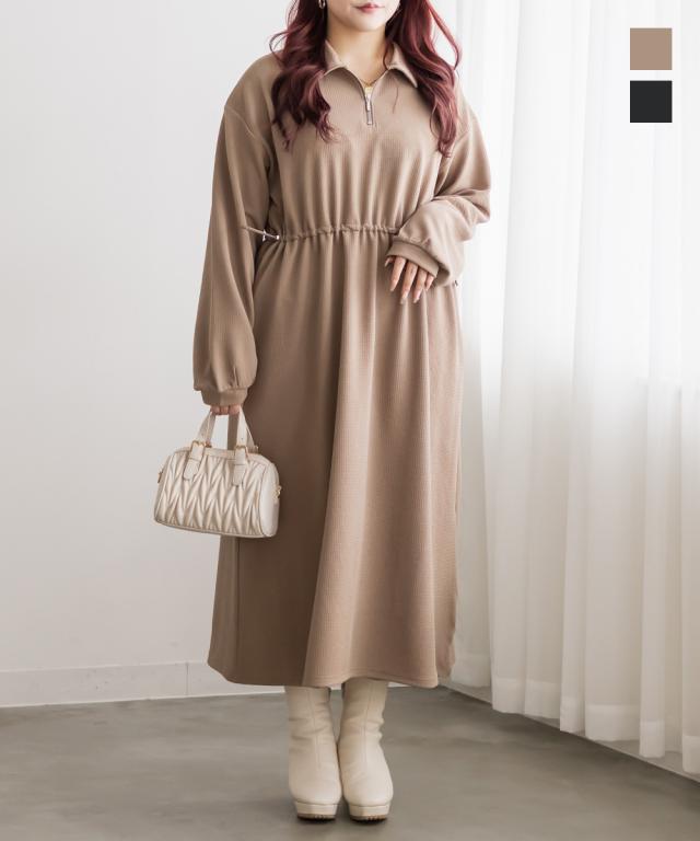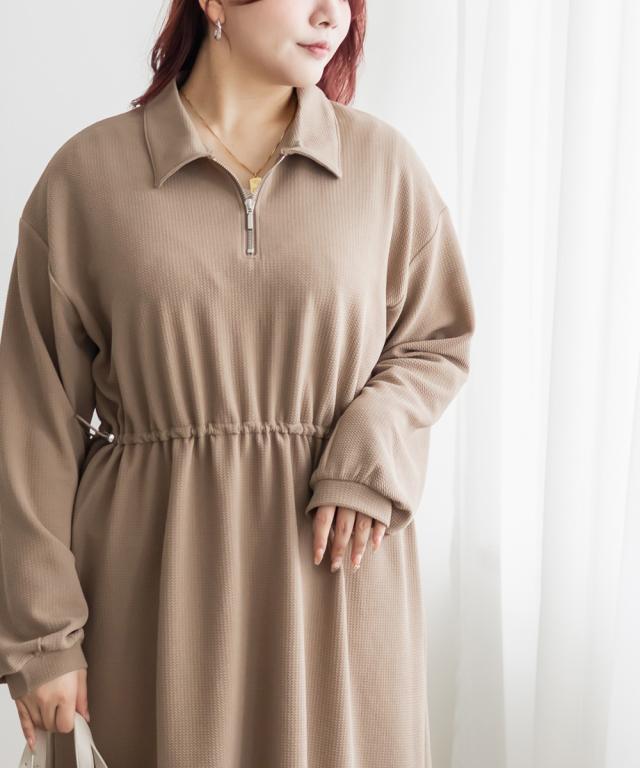 大きいサイズ/レディース/3L/4L/ハーフジップふくれジャガードドロストワンピース