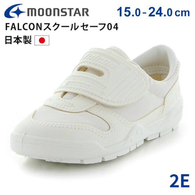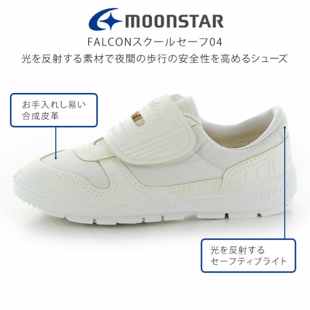 ムーンスター FALCON スクールセーフ04 スニーカー キッズ 履きやすい 歩きやすい 疲れない マジックテープ ベルクロ 軽量 2E 安全 反射材 白 ホワイト 日本製 男子 女子 男の子 女の子 小学校 保育園 幼稚園 学校 白スニーカー 運動靴 通園 通学 スクール シューズ 靴