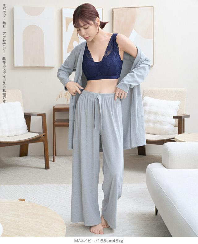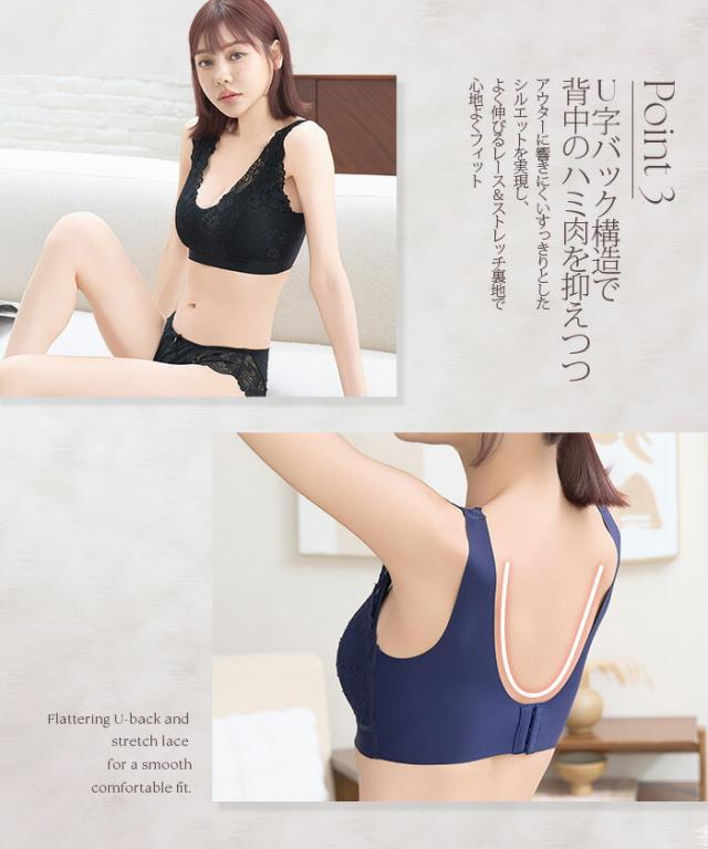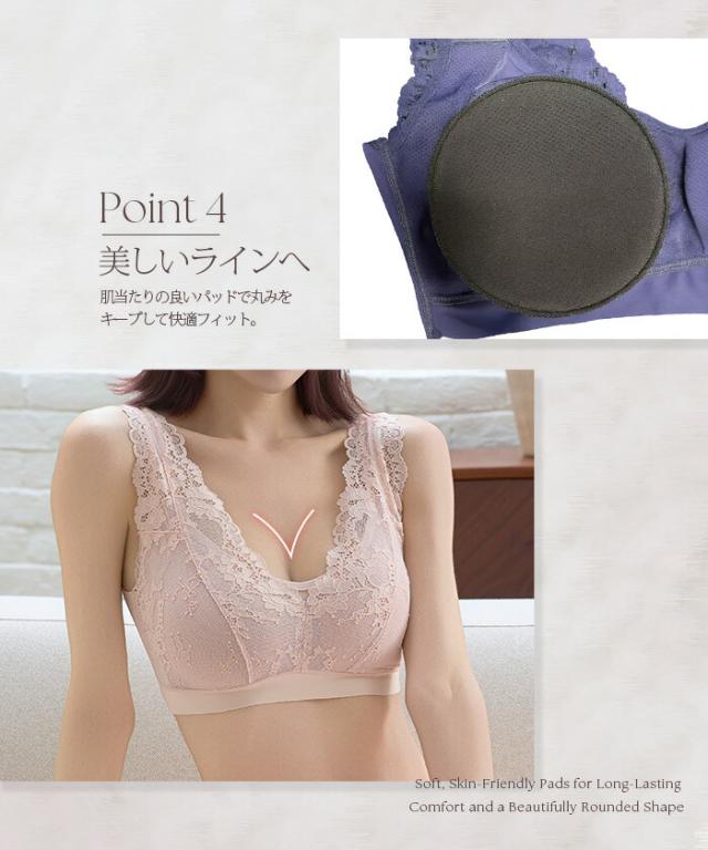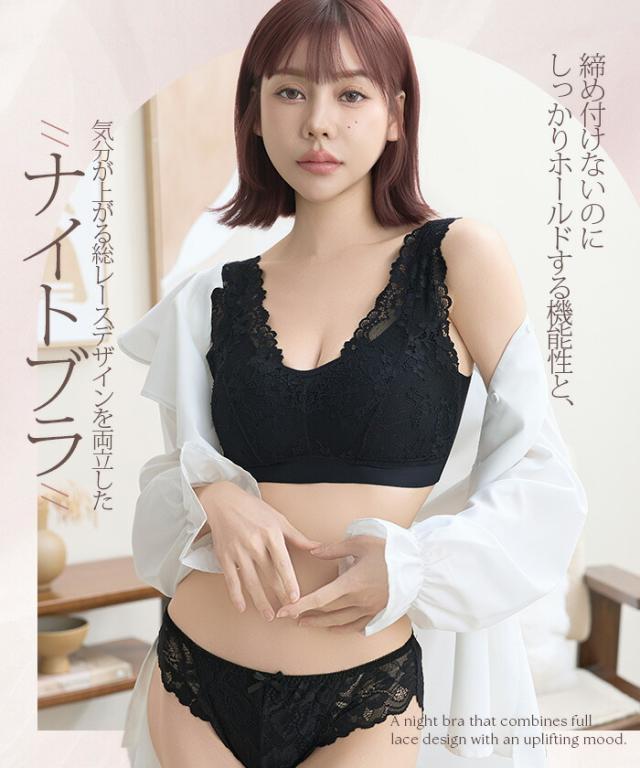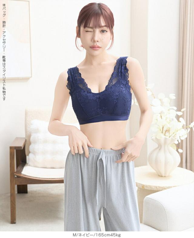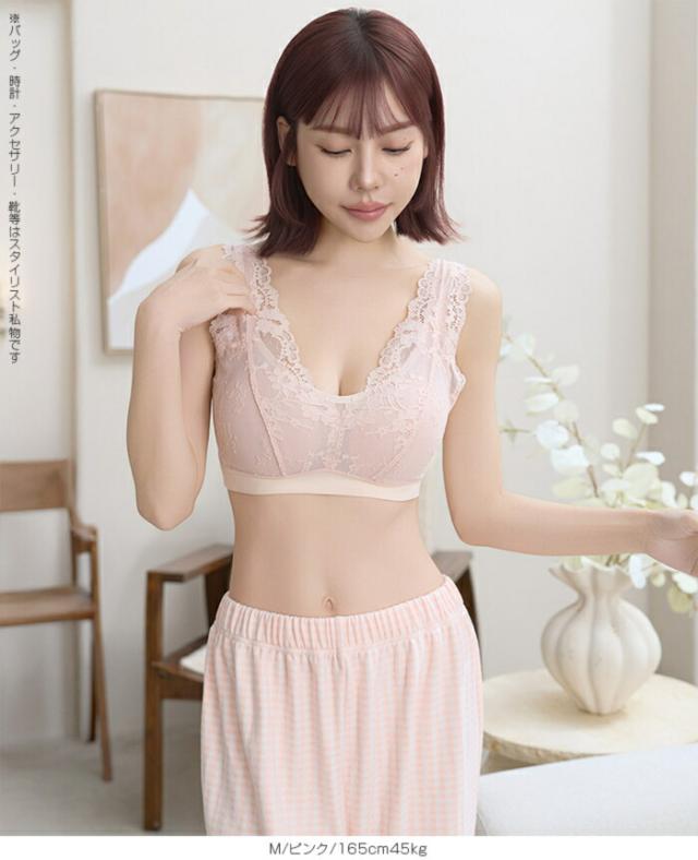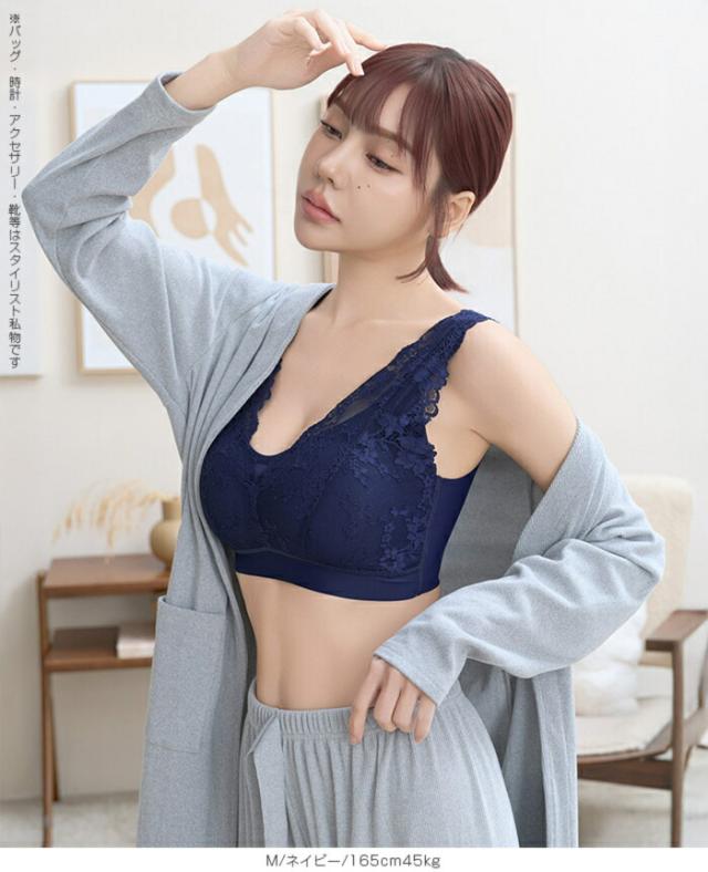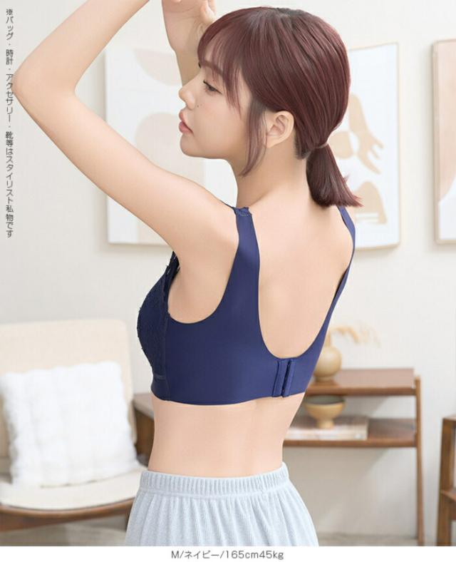 寝ている間も日中も、 やさしい着け心地でバストラインを整えるノンワイヤーのナイトブラ 脇高設計と広めアンダーで横流れをガードし、 自然な丸みと谷間メイクをサポート。 伸縮性のあるレース生地と太めストラップで食い込みにくく、 長時間でも快適。 24時間使える昼夜兼用デザインだから、 リラックスタイムからお出かけまでこれ一枚で美胸メイクが叶います。 サイズ展開も幅広く、 大人の女性に似合う上品カラーをご用意。 《商品ポイント》 ノンワイヤーでも安定感◎:脇高×幅広アンダーで横流れを抑え、丸みのある美胸をキープ 肩がラク:太めストラップで食い込みを軽減。就寝時も日中も快適 ソフトに密着:よく伸びるレース&ストレッチ裏地で心地よくフィット 24時間使える昼夜兼用:リラックス時・お仕事・家事・就寝までオールデイ対応 谷間メイクをサポート:中央に寄せやすいカップ形状で自然なボリューム感 お手入れ簡単:型崩れしにくい素材でデイリーに使いやすい 《デザイン・シルエット》 総レースのフェミニンデザイン。 胸元はほどよいV開きで首元をすっきり見せサイド高めの設計で脇すっきり。 後ろは広めUバックで段差見えをケア体の動きに沿う立体カップ。 ノンワイヤーでもゴロつきにくいフラット仕様 《コーディネート提案》 カーディガンやルームウェアのインナーとして。おうち時間も上品に 伸びのよいリブトップスやTシャツの下でもひびきにくく、毎日のデイリー使いに最適 《サイズ・カラーバリエーション》 サイズ:S/M/L/XL カラー:ブラック/ピンク/ネイビー 《素材・機能性》 ・素材:本体:ナイロン80%、ポリウレタン20% レース:ナイロン90%、ポリウレタン9%、ポリエステル1% ・透け感:なし ・伸縮性:あり(優しくフィット) ・厚み:薄手 |