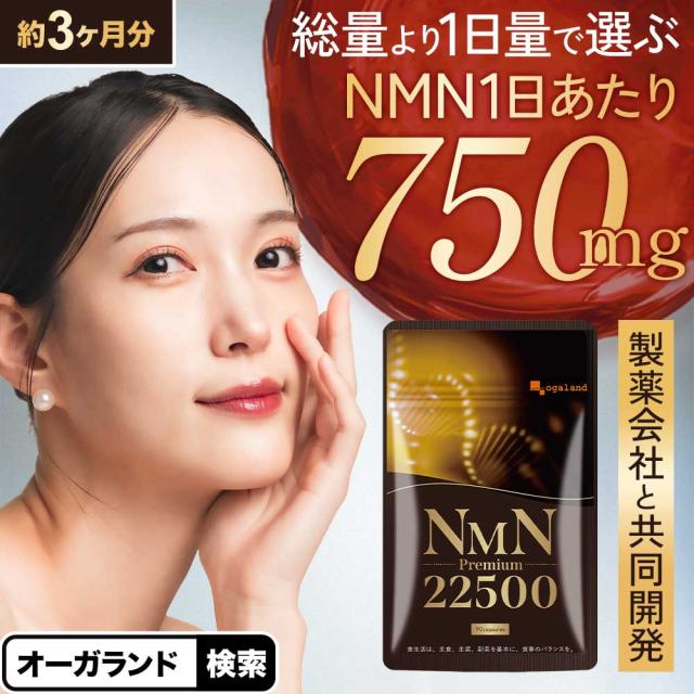 NMNプレミアム22500(約3ヶ月分) 日本製 1日750mg 植物由来 製薬会社と 共同開発 耐酸性 高純度 99%以上 自然派 NMN 美容 健康 若々しさ 美容の ベースサプリ 女性 サプリメント 美容ケア サプリ オーガランド _JH _3K 48002