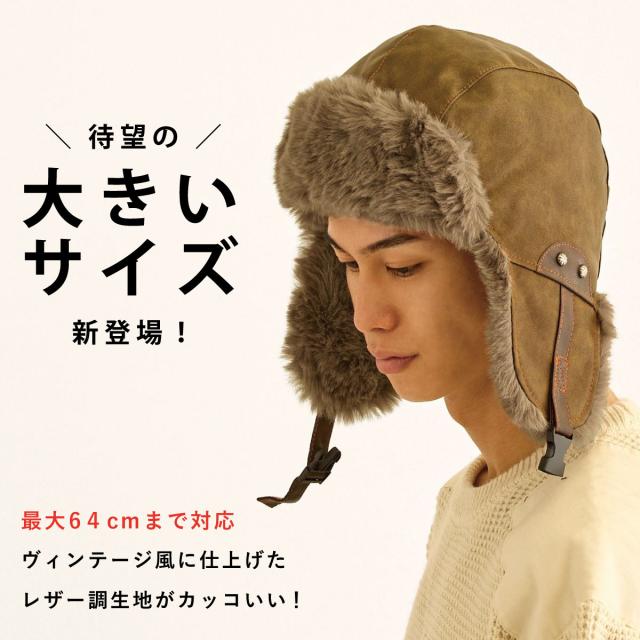 防寒 帽子 メンズ 耳あて 2WAY ファー フライトキャップ 大きい レザー調 63cm 耳まで暖かい エコファー 冬 hat-1555 小顔 パイロットキャップ BIG 耳あて付き 帽子 ビンテージ トラッパー 寒さ対策 プレゼント 即納【メール便送料無料】