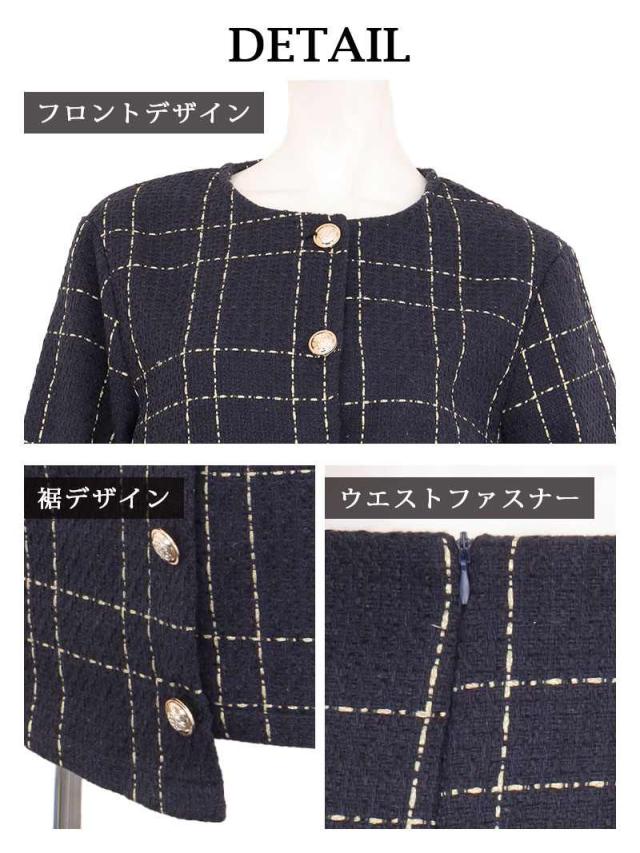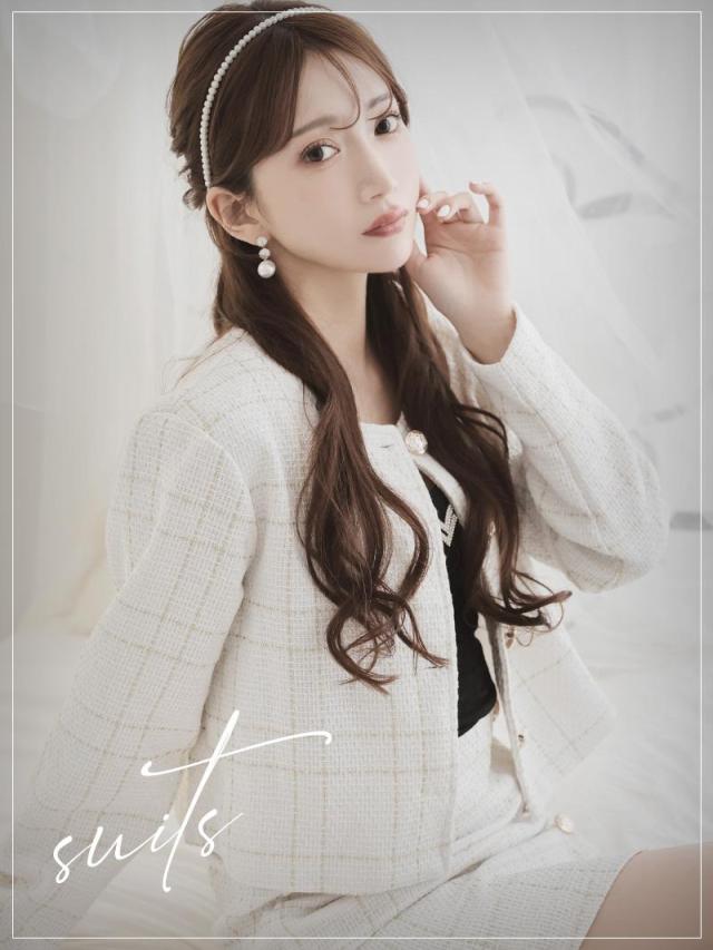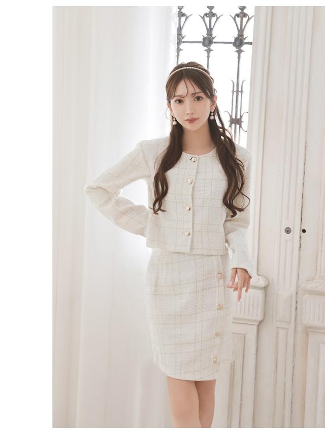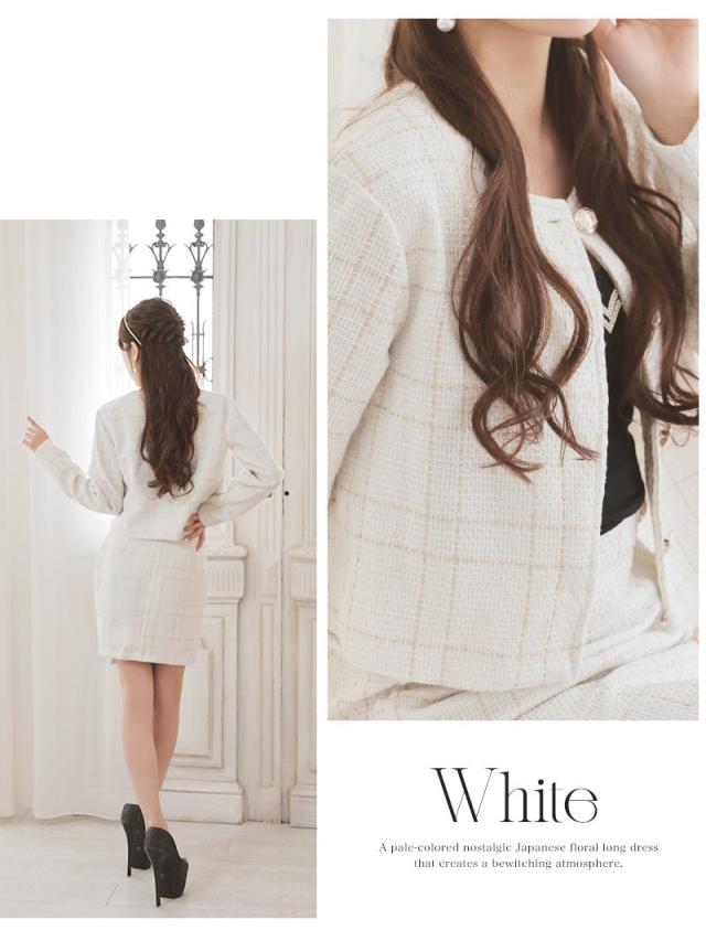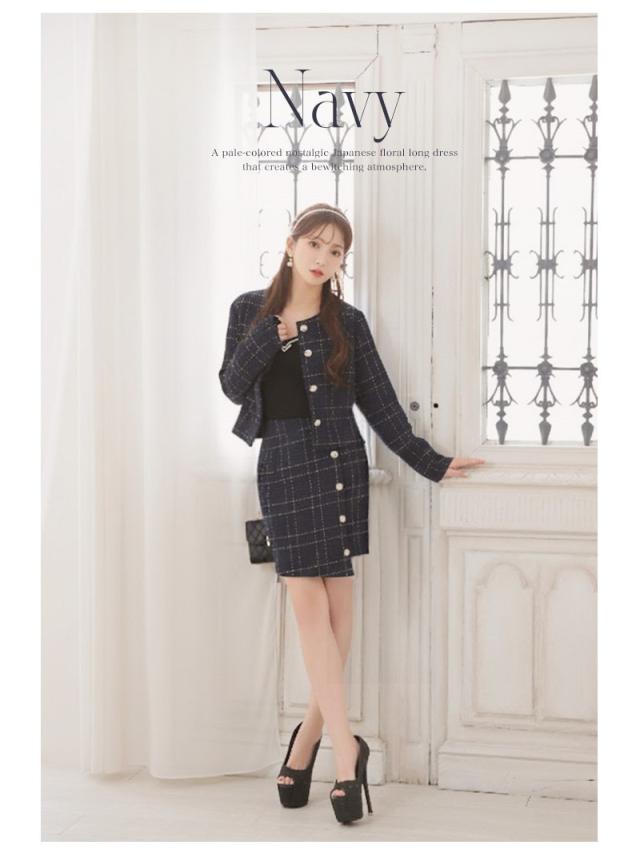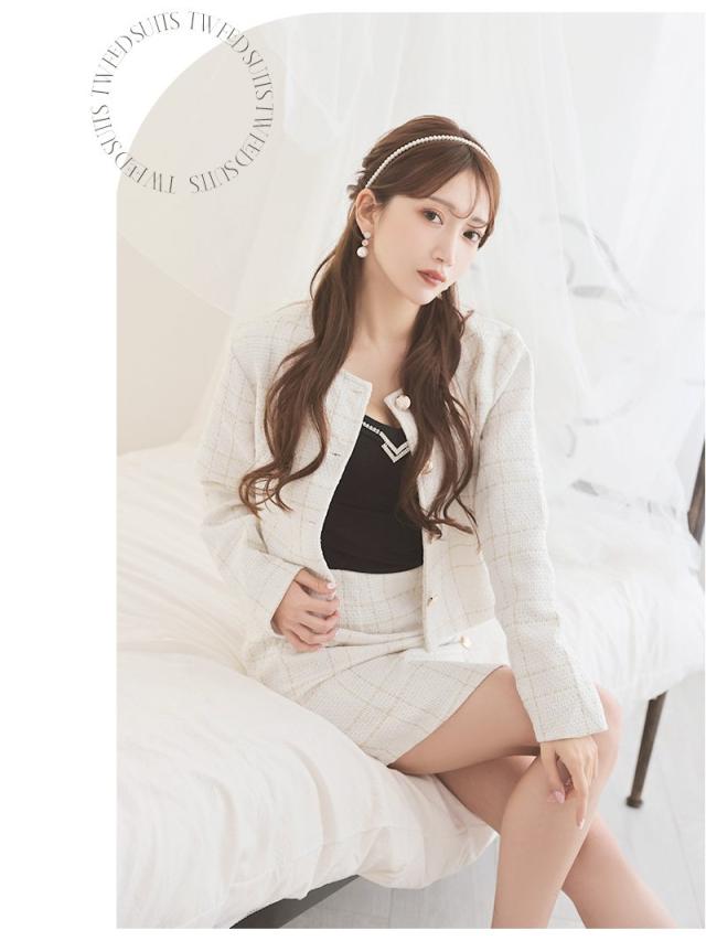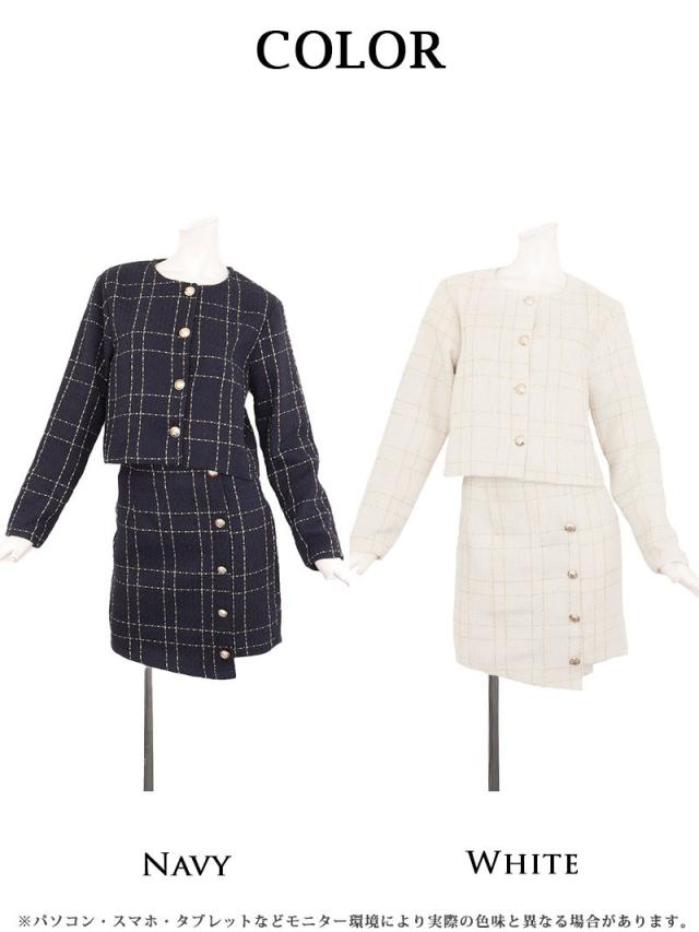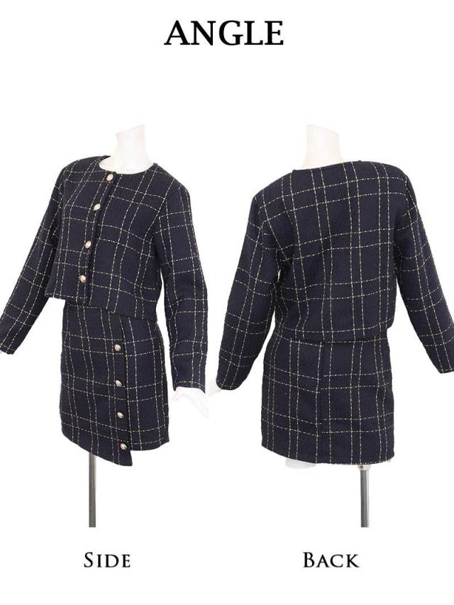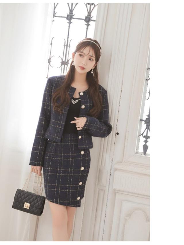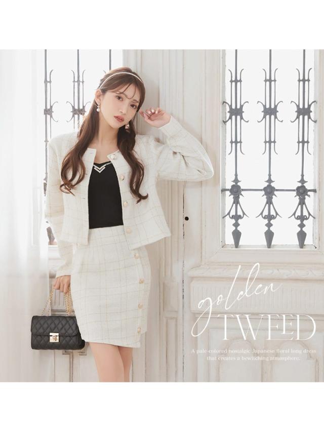 一部予約販売 キャバスーツ Ryuyu ゴールドチェック ゴールドライン ノーカラーツイードスーツ アシンメトリー ラップスカ