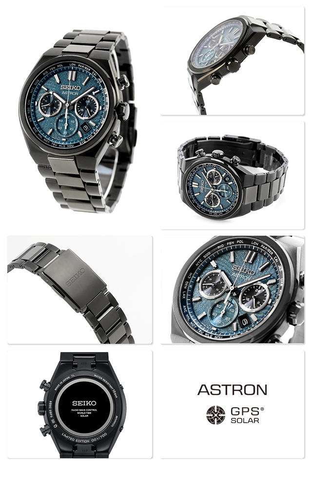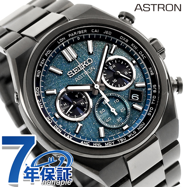 正規品 7年保証キャンペーン 送料無料 セイコー アストロン ネクスター "Starry Sky" 2026 限定モデル チタン 数量限定 クロノグラフ 日本製 メンズ 腕時計 SBXY105 SEIKO ASTRON NEXTER アナログ ブルーラメ ブラック 黒 ◆宇宙に瞬く星空をデザインソースとした「Starry Sky」から壮大な宇宙に渦巻く銀河を表現した2026年限定モデルが登場。漆黒の宇宙の中で銀河が輝く壮大な情景を、オールブラックカラーのケース・ブレスレットと、ダークターコイズ(深い青緑色)カラーをベースとしたラメ入りのダイヤルで表現。ダイヤルには、若い星々が渦を巻いて銀河を形成していく様子をイメージした、質感の高い新規型打ち「スパイラルパターン」を採用。艶やかな光沢を放つ中駒鏡面仕上げのブレスレットがより一層特別感を醸成します。 発売日:2026年1月発売