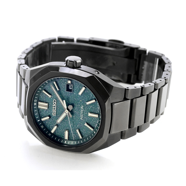 正規品 7年保証キャンペーン 送料無料 セイコー アストロン ネクスター "Starry Sky" 2026 限定モデル チタン 数量限定 日本製 メンズ 腕時計 SBXY107 SEIKO ASTRON NEXTER アナログ ブルーラメ ブラック 黒 ◆宇宙に瞬く星空をデザインソースとした「Starry Sky」から壮大な宇宙に渦巻く銀河を表現した2026年限定モデルが登場。漆黒の宇宙の中で銀河が輝く壮大な情景を、オールブラックカラーのケース・ブレスレットと、ダークターコイズ(深い青緑色)カラーをベースとしたラメ入りのダイヤルで表現。ダイヤルには、若い星々が渦を巻いて銀河を形成していく様子をイメージした、質感の高い新規型打ち「スパイラルパターン」を採用。艶やかな光沢を放つ中駒鏡面仕上げのブレスレットがより一層特別感を醸成します。 発売日:2026年1月発売