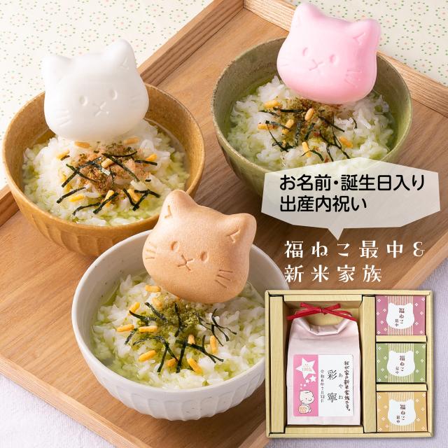 出産内祝いに名入れができる、美味しい新潟コシヒカリ1000gと猫最中のギフトセット