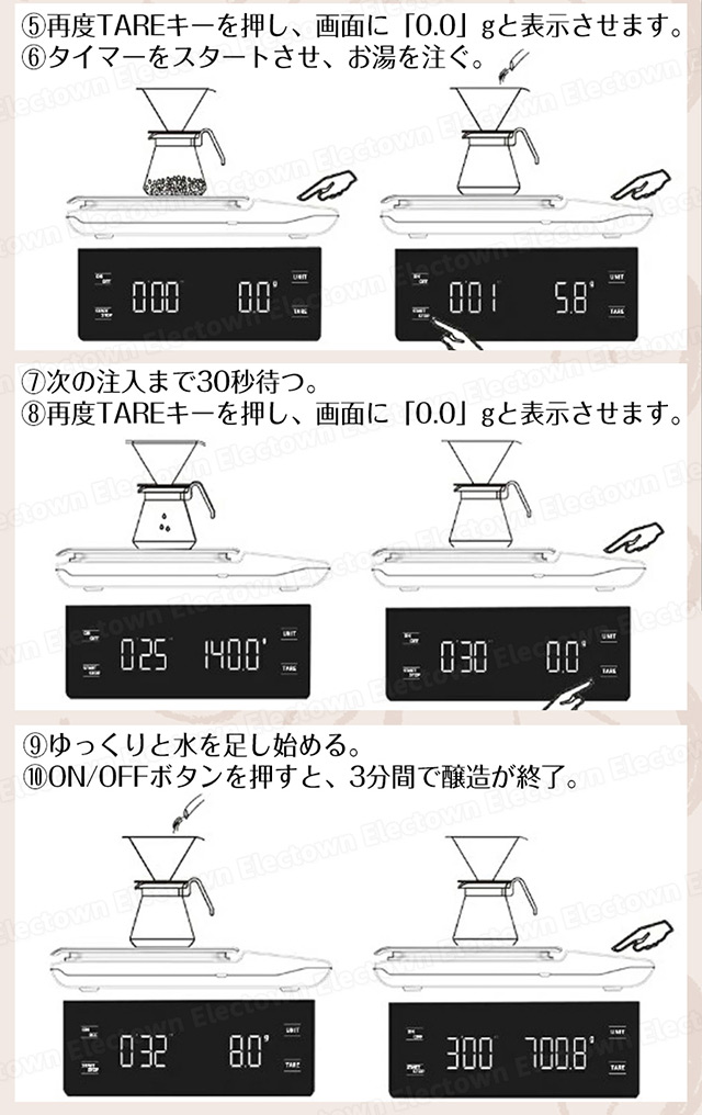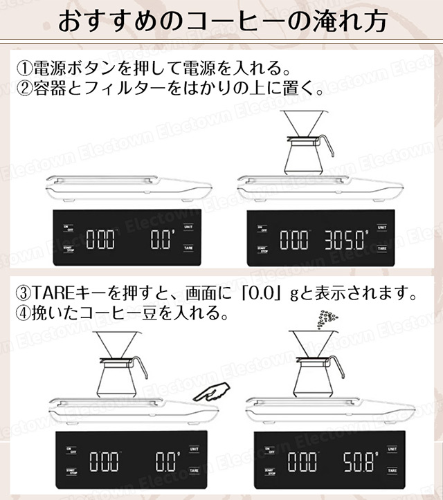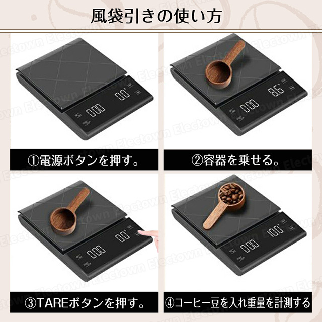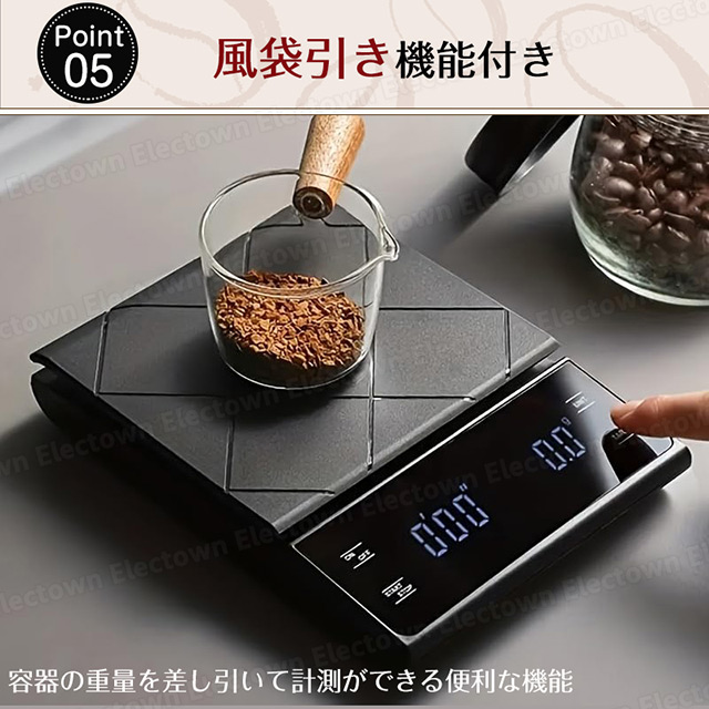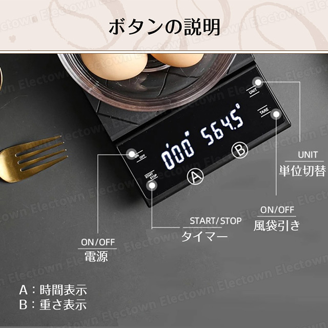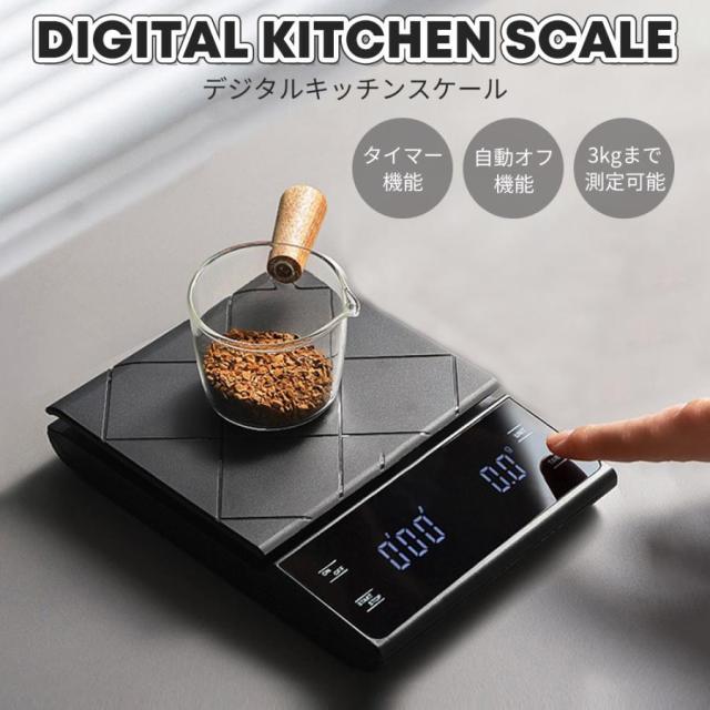 「クーポン配布中」【即納】高精度 コーヒースケール キッチンスケール デジタルスケール 電池式 タイマー機能付き 0.1g単位 3kgまで 風袋引き機能 シンプル はかり ドリップスケール コンパクト シリコンマット付 お菓子作り