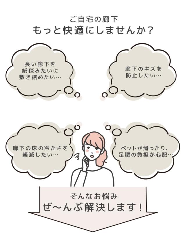 玄関や廊下、キッチンのフロアをしっかり守りながら、足元の冷えも軽減。裏面には滑り止め加工を施しており、ズレにくく安全に使用できます。