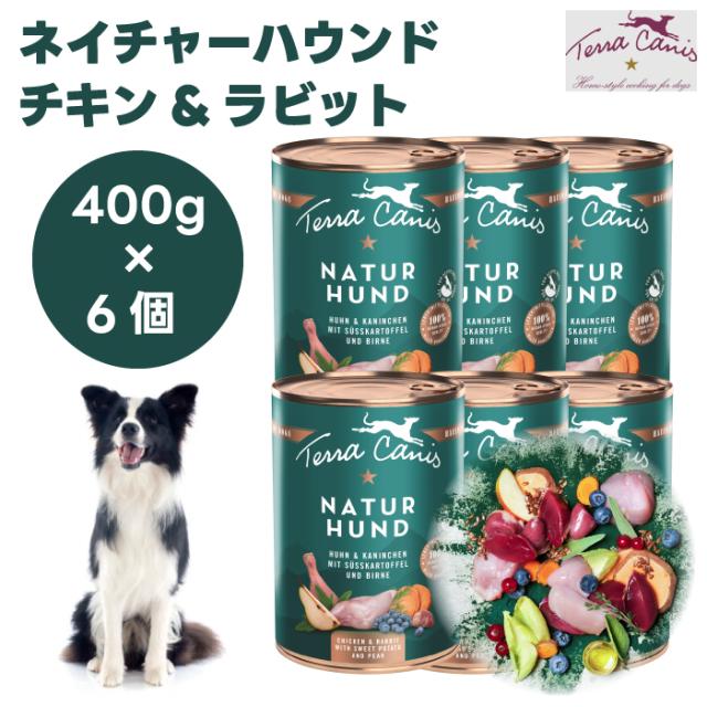 テラカニス ネイチャーハウンド 高栄養食 チキン&ラビット スウィートポテト&梨 400gx6個 ドッグフード 犬 餌 缶 ウェットフード TerraCanis
