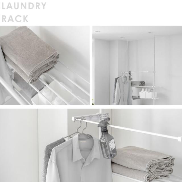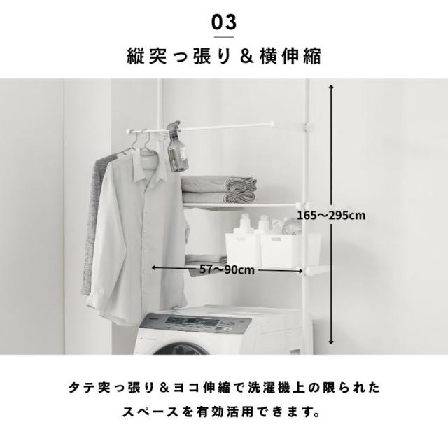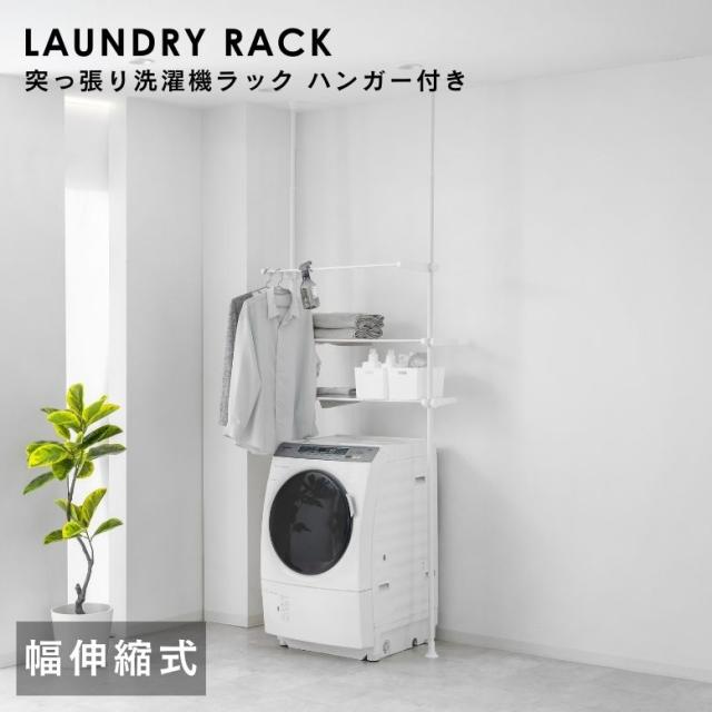洗濯機ラック ランドリーラック つっぱり式 洗濯機上 ラック 棚板 突っ張り式ラック 収納ラック つっぱり棚 スリム 武田 突っ張り洗濯機ラック ハンガー付き