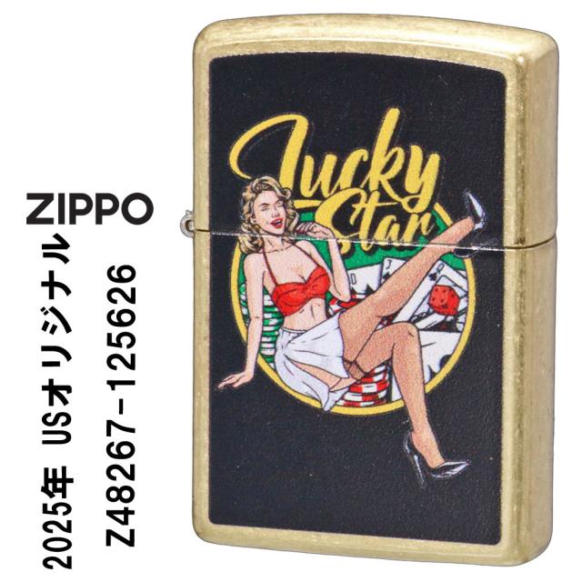 zippo ジッポーライター USオリジナルZIPPO 2025 ガール柄 LUCKY STAR ストリートブラス プリント加工 Z48267-125626 オイルライター メンズ レディース かわいい セクシー レトロ ピンナップ アメリカン おしゃれ ギフト プレゼント 送料無料 メール便対応