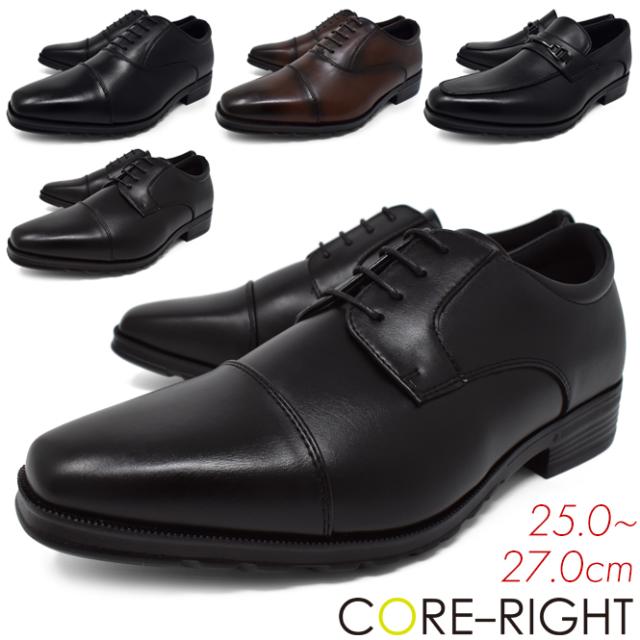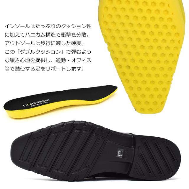 ビジネスシューズ メンズ リカバリービズ Wクッション 紐 ビット ローファー ストレートチップ Uチップ 内羽根 外羽根 幅広 3E 黒 茶色 革靴 CORE-RIGHT 履きやすい 疲れない 痛くない 履きやすい 走れる クッション性 ポイント消化