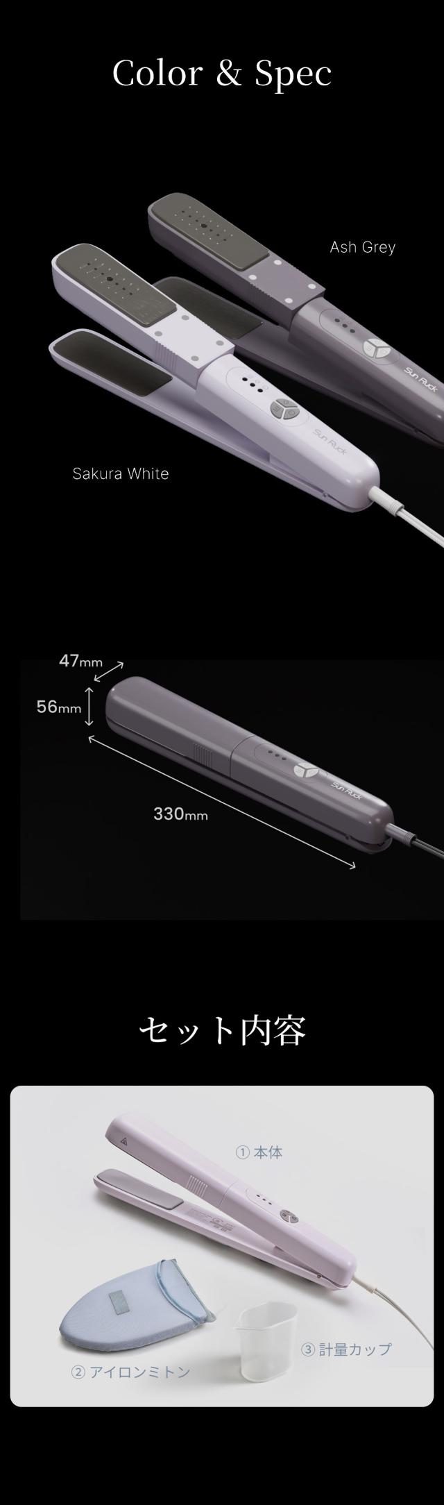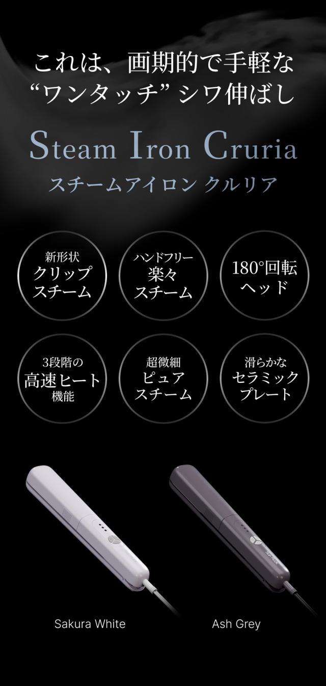 挟めるスチームアイロン クルリア 衣類ケアを、もっとスマートに。スチームも、プレスも、これ一本。 SunRuck SR-HT2002-PK サクラホワイト SR-HT2002-GR アッシュグレー