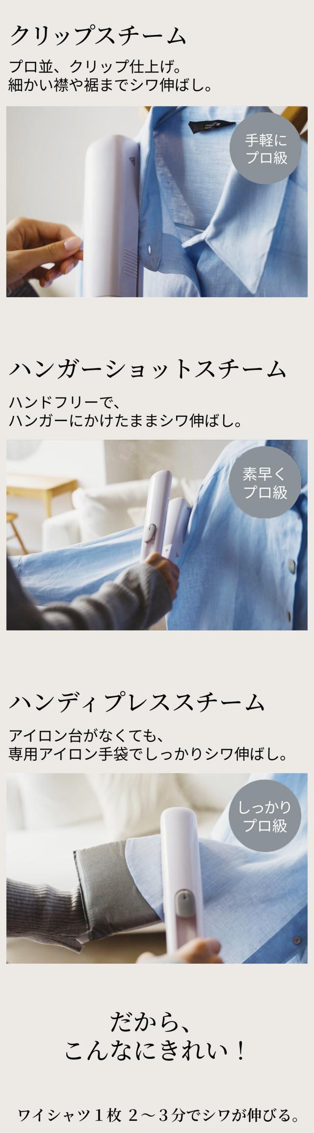 3変式ALL IN ONEヘッドで衣類のシワ取りを1台ですべて解決。