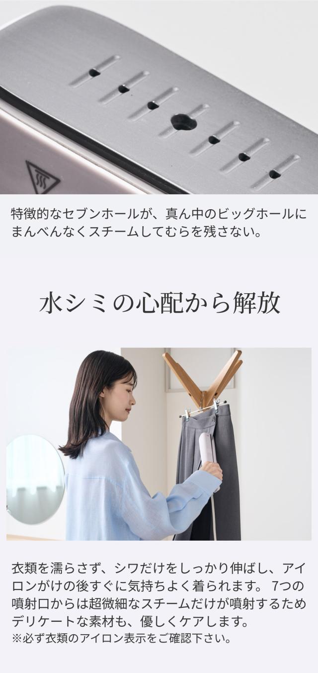7つの噴射口からは超微細なスチームが噴射するためデリケートな素材も、優しくケアします。