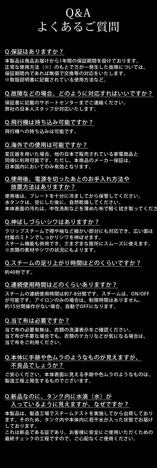 | スチーム連続稼働時間(約) | 7〜8分 |