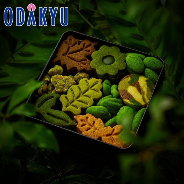 米粉ならではのレトロな食感で、見ても食べても楽しめる鮮やかな葉っぱ型のお茶づくしのボタニカルクッキー缶。