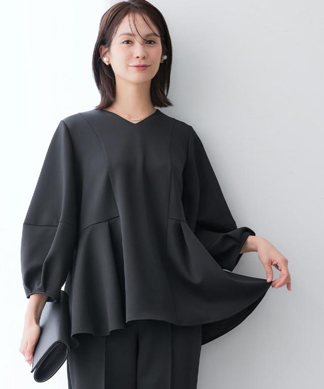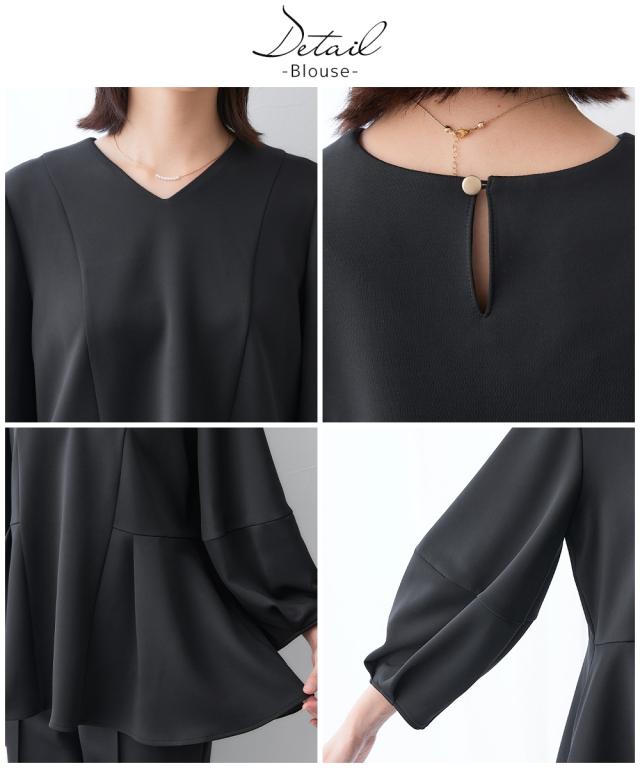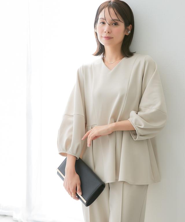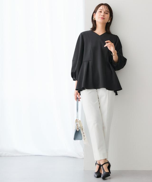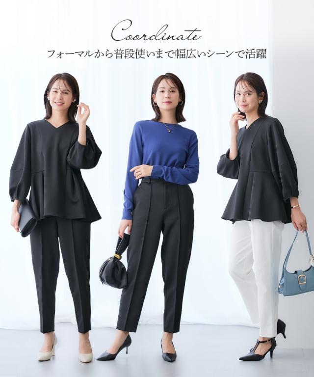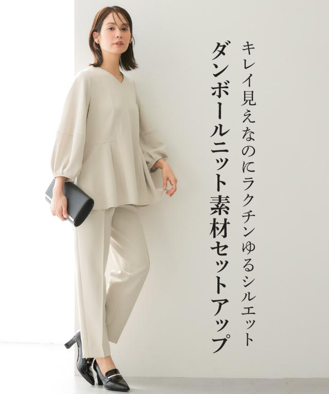 スーツ レディース ダンボール ニット 素材 ブラウス セットアップ 9分袖 +テーパード パンツ 春 秋 ビジネス | S/M/L | ニッセン nissen