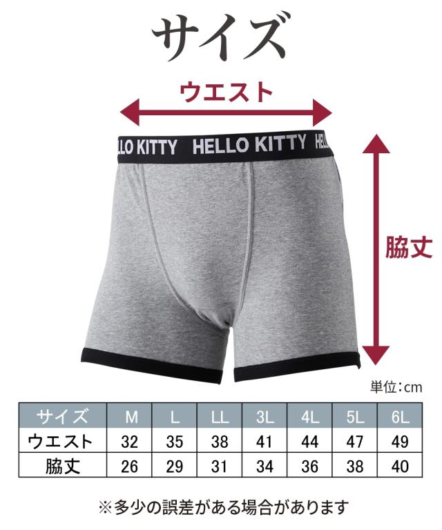 毎シーズン好評! 大人気!ハローキティのメンズボクサーパンツです。 他社では買えないニッセンオリジナル柄のセット組。 M〜6Lまで、豊富な7サイズ展開! ■綿混 綿たっぷり95%のやさしいはき心地。 肌あたりがよく、オールシーズン快適な素材です。 ■ストレッチ やさしく伸びるストレッチ素材を使用。 ほどよくフィットして動きやすい! ■ニッセンオリジナルデザイン 毎シーズン好評のキャラクターボクサーパンツ! ニッセンでしか買えないオリジナル柄です。 ■豊富なサイズ展開 M〜6Lまで、豊富な7サイズ展開! あなたにぴったりなサイズがきっと見つかります。 ■お得なセット組 洗い替えに便利なセット組でお届けします。