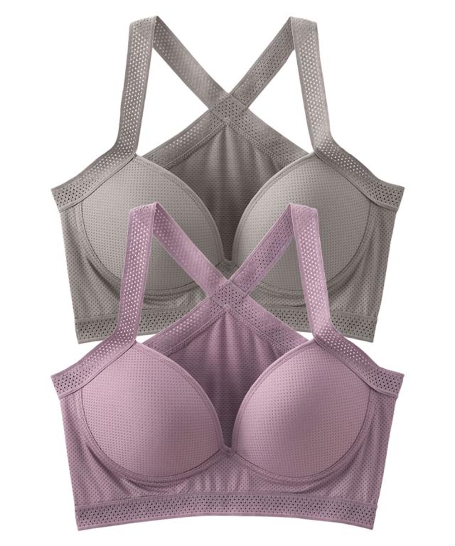 吸汗速乾メッシュ 背中クロスでかたらっくシームレスハーフトップ2枚組