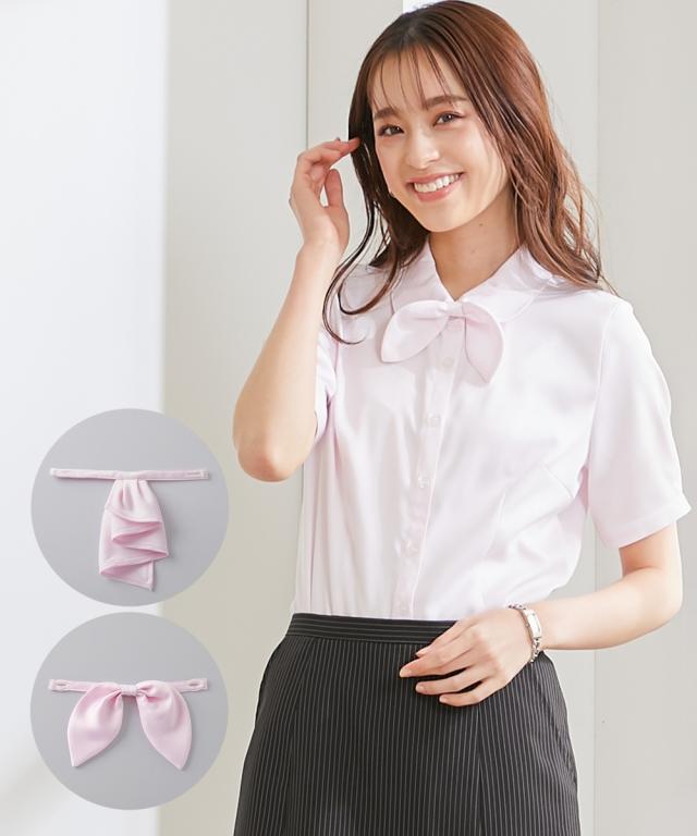 ☆制服スタイルの女子力を後押しする、フリルタイとリボンタイが付いたシャツの半袖タイプです☆・上品な光沢があり、肌触りもよいパウダーサテン素材のシャツ。・女性らしい丸みのある衿に2種類のタイを付け替えできるデザイン。・リボンタイ・フリルタイが胸元を華やかに演出します。・洗濯機で洗濯できるのでヘビロテ可能です。・抗菌防臭加工付きで胸元がちら見えしないように付いた隠しボタンも嬉しいポイント。