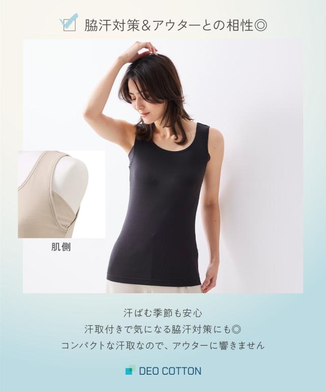 DEOコットン 綿100%汗取り付タンクトップ(消臭・抗菌防臭)