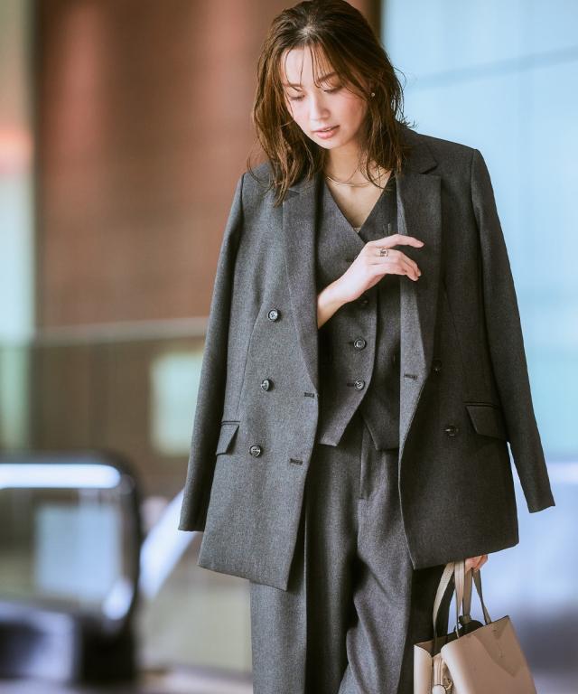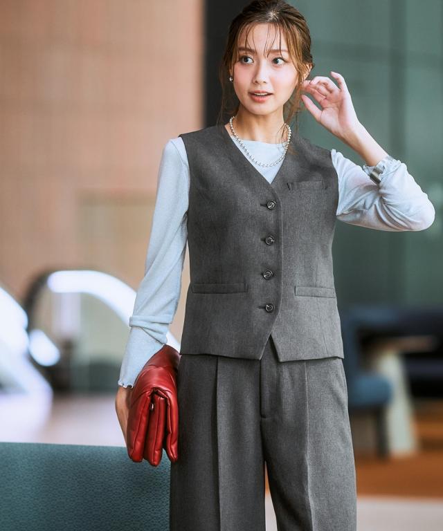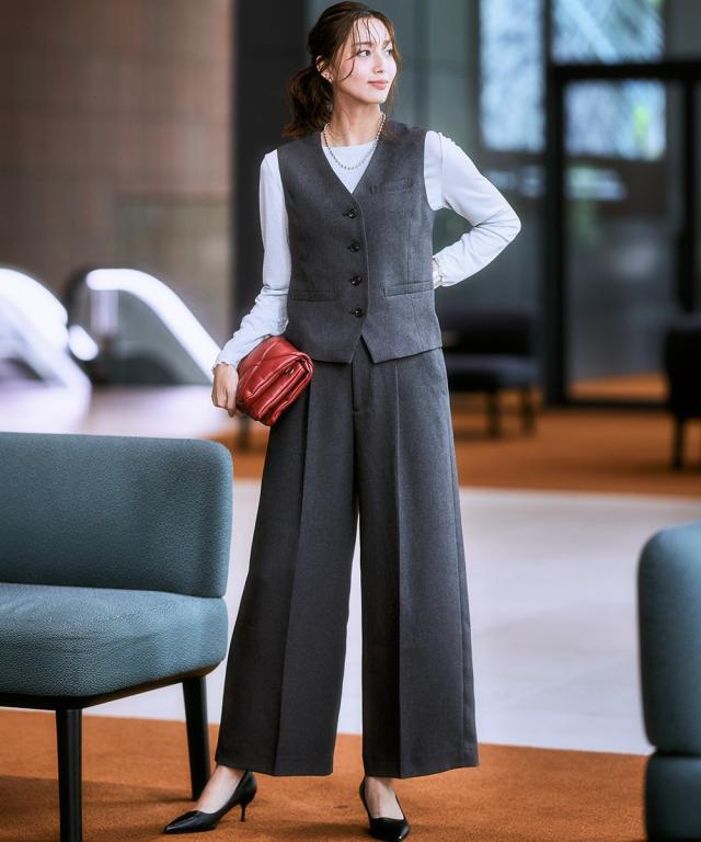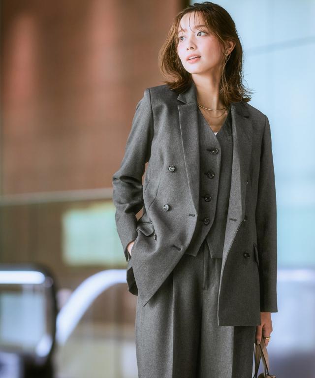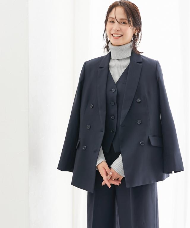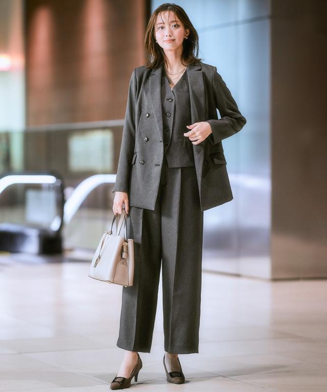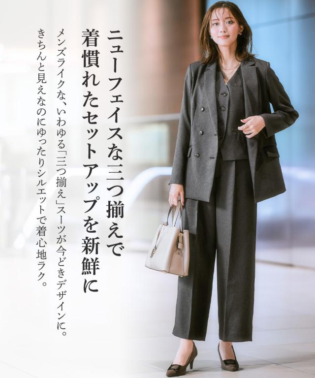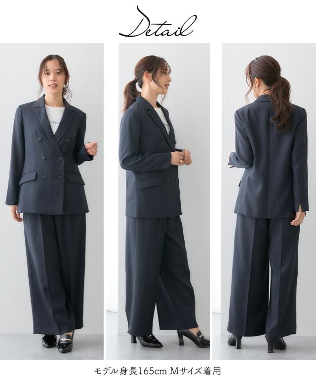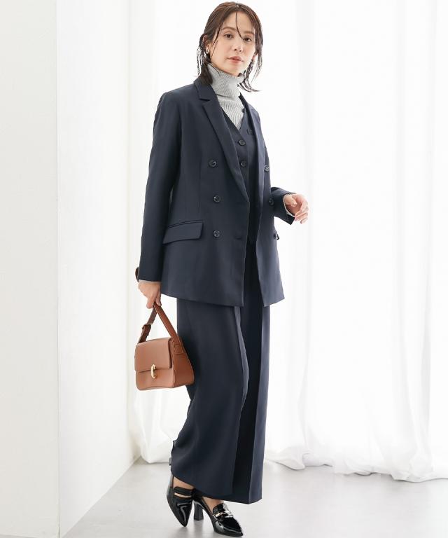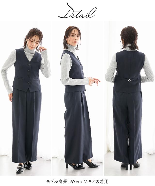 スーツ レディース 3つ揃え ダブルブレスト テーラード ジャケット + ベスト +ワイド ストレート パンツ 春 秋 ビジネス | LL/3L | ニッセン nissen