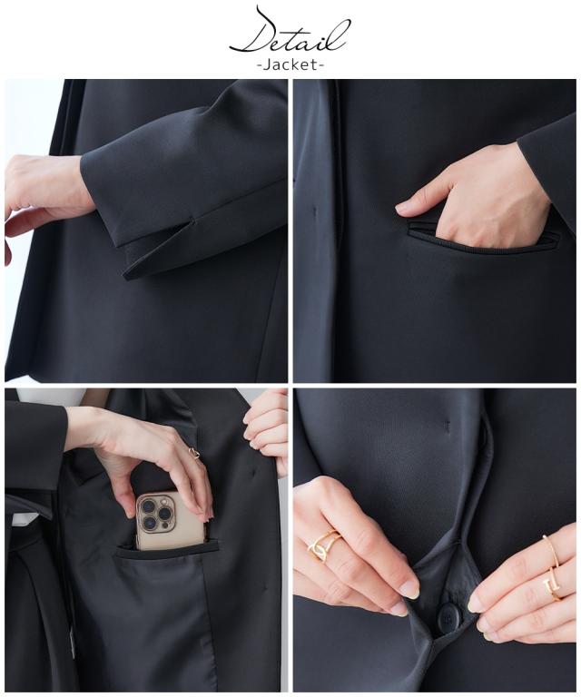 品質=[表地]ポリエステル95%・ポリウレタン5%(編物) [裏地]有(ジャケット:総裏)パンツ無 ジャケット:肩パッド無 前ボタン開 ポケット前2・左内 袖口スリット パンツ:前ホック付ファスナー開 ウエスト後ゴム入 ポケット両脇 ※この商品は2点同サイズのみで販売します。 原産国:中国製 備考:洗濯機OK ネット使用 ※単位:cm※商品サイズは、仕上がりサイズです。※サイズの誤差は多少発生します。ご了承ください。