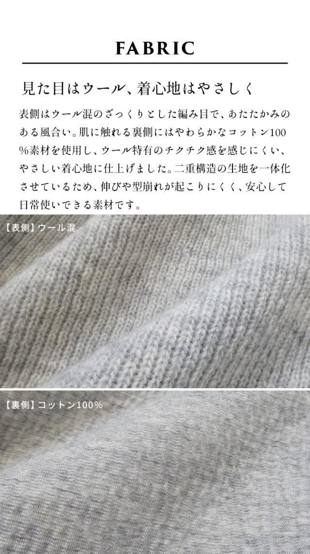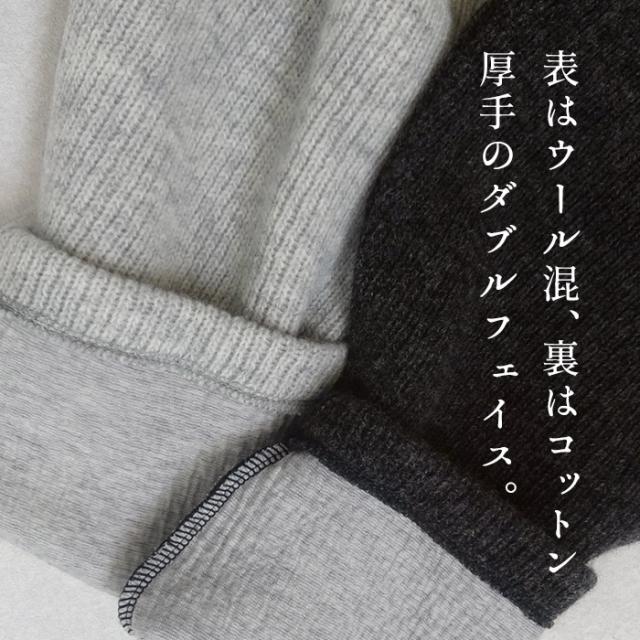 素材 【全体比率】毛56%、綿27%、ナイロン17%(裏側:綿100%)