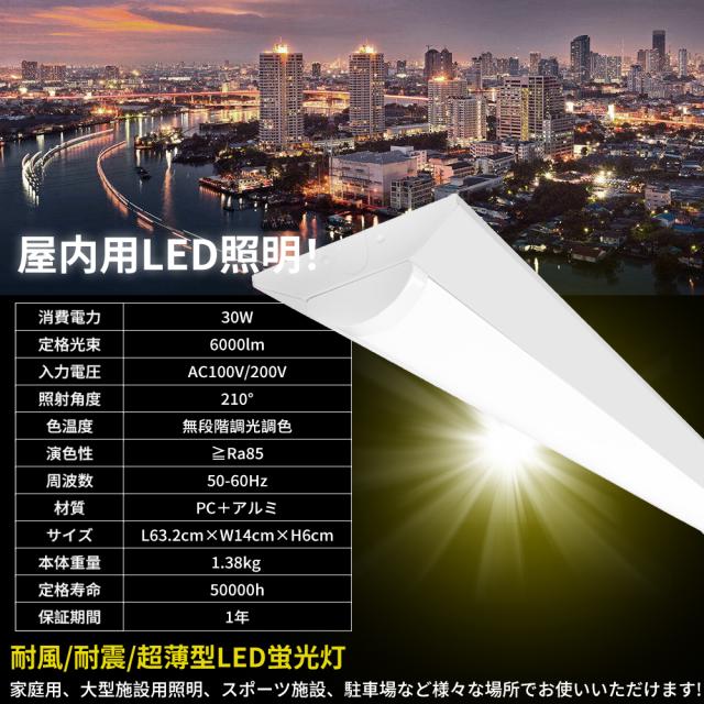 LED蛍光灯 器具一体型 トラフ形 LEDベースライト 20W 2灯相当 調光調色 LED蛍光灯 20W型2灯式相当 リモコン 直管蛍光灯 薄型 直付形 6000lm 30W 63cm シーリングライト キッチン ベースライト ベース照明 逆富士形 タイマー機能トラフ型照明器具 20W形 色選択 広配光 1年保証