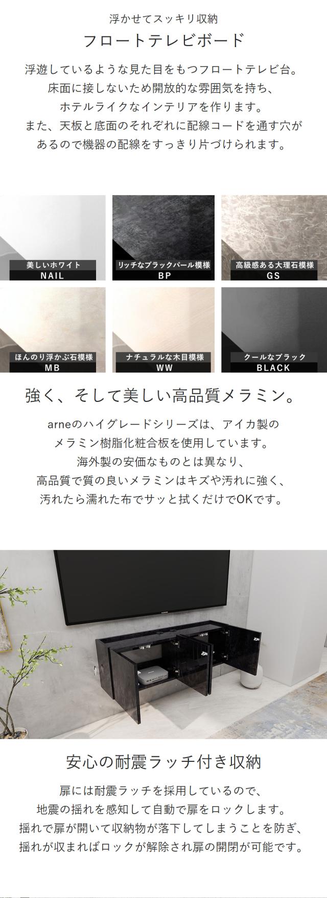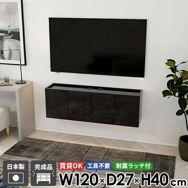 ウォールシェルフ フロートテレビボード フロート TVボード テレビボード テレビ台 壁付け 高さ40 扉 賃貸 48型 シンプル 省スペース 石膏ボード 高級感 壁掛け 浮かせる おしゃれ 幅120 配線 完成品 ホテルライク 後付け 42型 ブラック 日本製 黒 大理石調 収納 鏡面 ●