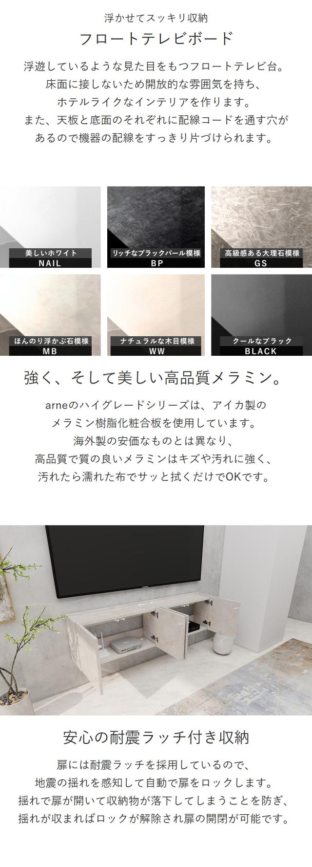 フロートテレビボード TVボード テレビ台 フロート テレビボード ウォールシェルフ シンプル 50型 高さ40 おしゃれ 42型 壁付け 幅150 浮かせる 完成品 扉 高級感 省スペース 賃貸 配線 鏡面 収納 壁掛け 48型 ホテルライク マーブル 石膏ボード 日本製 後付け ●