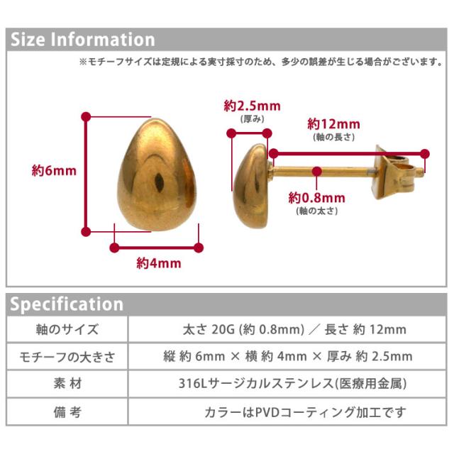 金属アレルギー対応 ステンレスピアス タイニードロップモチーフピアス ドロップ 小粒 プチサイズ スタッドピアス ファーストピアス セカンドピアス スポーツ プール 両耳用