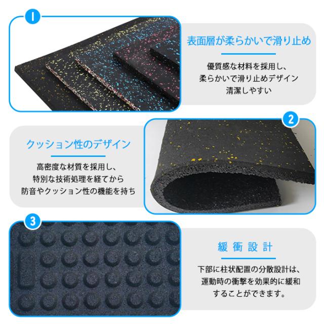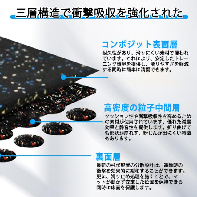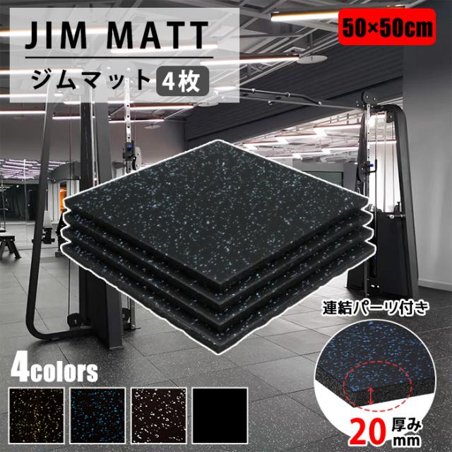 【4枚】ゴムマット 筋トレ マット ジムマット トレーニングマット ラバー トレーニングマット 20mm 防音 防振 床 ホームジム 筋トレ ダンベルマット フロアマット 衝撃吸収 難燃 筋トレ ラバーマット 50角 厚手 フィットネス バーベル パーツ付