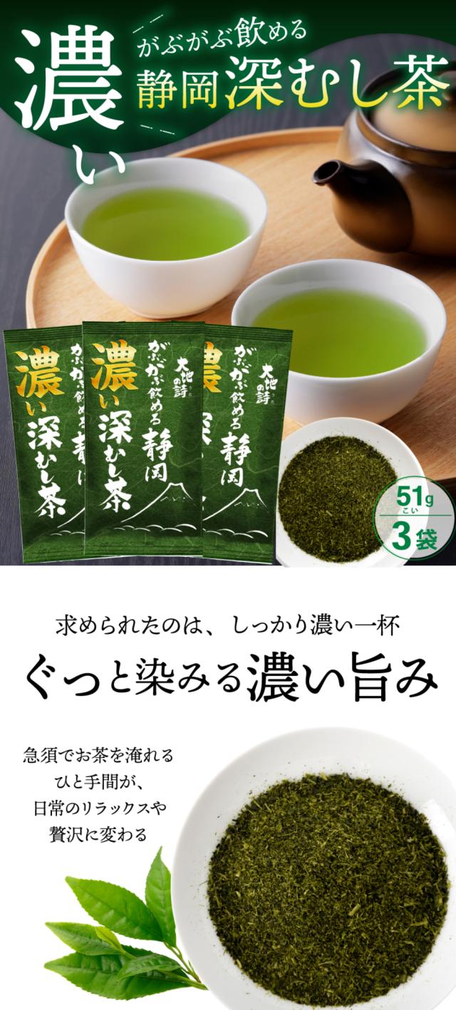 濃いがぶがぶ飲める静岡深むし茶 51g 3袋セット 緑茶 静岡茶 日本茶 深蒸し茶 牧之原茶 お茶の葉 茶葉 カテキン テアニン ビタミンC