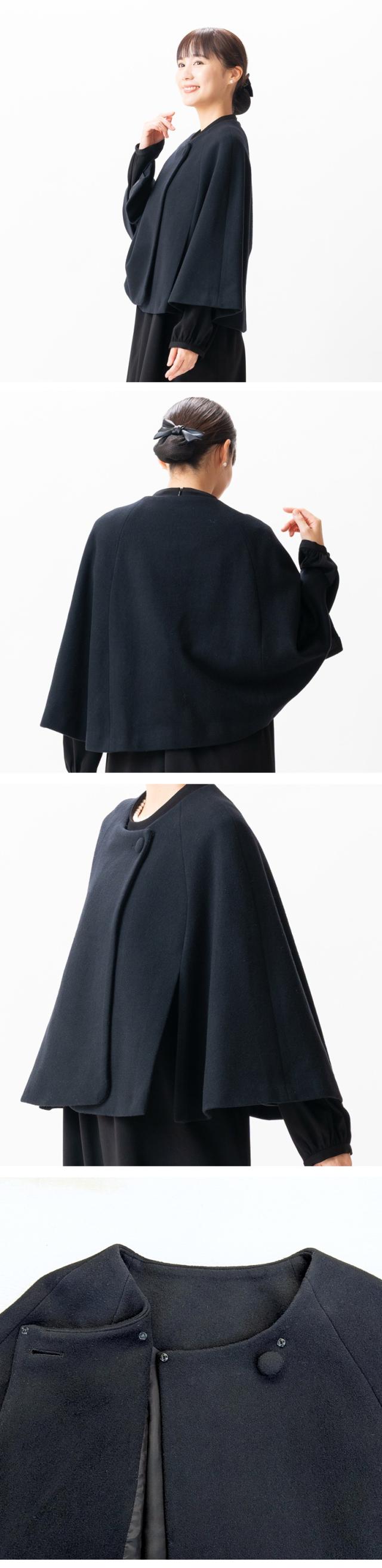 2025〜26年冬物新発売 日本製 冬用 ブラックフォーマル ケープコート PB18204 単品 肉厚な毛100% フリーサイズ レディース 婦人 礼服 喪服 冠婚葬祭 葬儀 葬式
