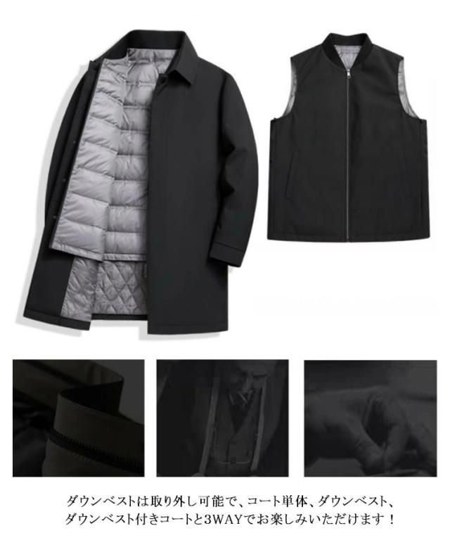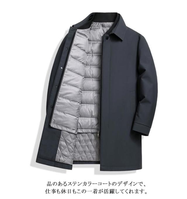 ダウンライナー付き ステンカラーコート メンズ コート ビジネス ハーフコート ダウンコート ダウンジャケット スプリングコート 3in1ジャケット アウター 防寒 冬コート ステンカラー ロングコート オフィス カジュアル おしゃれ 高級感 紳士服