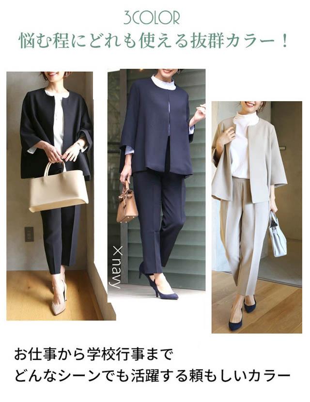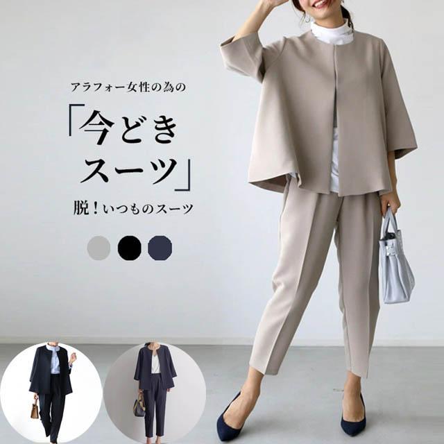 セットアップ 2点セット レディース フォーマル スーツコーデ カジュアル 女性用スーツ ママスーツ 結婚式 50代 40代 入学式 卒業式3色/S-XL