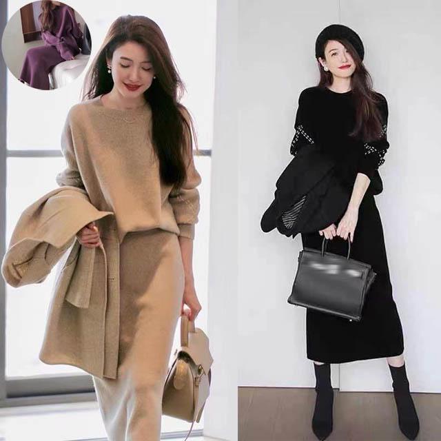 ニット セットアップ レディース 40代 秋冬 長袖 ニットトップス ニットタイトスカート 無地セーター オシャレワンピース 着痩せ 上品 入学式 卒業式 3色/S-XL