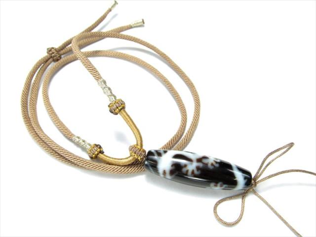 デザイン組み紐ネックレス ベージュカラー紐 首周りサイズ約60cm前後 サイズ調節付き 1本売り 天珠・天然石が装着可能 タイプP パワーストーン 天然石